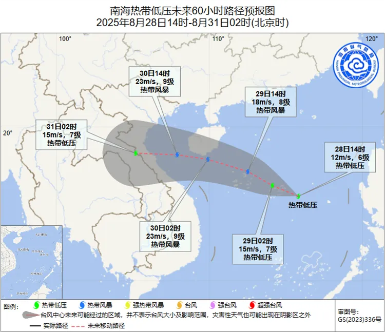 海南省氣象臺預(yù)計,該低壓將以每小時15~20公里的速度向西偏北方向移動,強度逐漸增強,有可能于29日加強為今年第14號臺風,并向海南島南部海面靠近。受其影響,8月28日下午~30日,西沙、中沙群島附近海面、海南島四周海面和北部灣海面,風力將逐漸增大到6~7級、陣風8~10級;海南島東半部地區(qū)有暴雨到大暴雨。請相關(guān)部門關(guān)注最新天氣預(yù)報,海上作業(yè)平臺及過往船只提前做好避風措施。