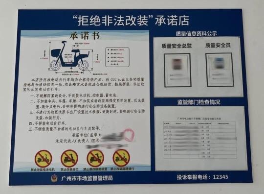 在檢查電動(dòng)自行車銷售門店經(jīng)營(yíng)情況方面,廣州市場(chǎng)監(jiān)管部門查資質(zhì)公示,核驗(yàn)門店?duì)I業(yè)執(zhí)照是否有效,檢查是否醒目公示“拒絕非法改裝”承諾等;查產(chǎn)品合規(guī),核對(duì)車輛CCC認(rèn)證標(biāo)志及產(chǎn)品合格證有效性,攜帶臺(tái)秤、尺具現(xiàn)場(chǎng)核查整車重量、尺寸,比對(duì)整車編碼、電動(dòng)機(jī)、蓄電池、控制器、充電器等關(guān)鍵信息與合格證信息一致性;查非法改裝,對(duì)照合格證簡(jiǎn)圖核查車輛外觀,排查破解限速裝置、改裝電動(dòng)機(jī)、控制器、蓄電池等違規(guī)行為;查規(guī)范管理,督促門店落實(shí)進(jìn)貨查驗(yàn)、索證索票、臺(tái)賬管理,規(guī)范“一車一池一充”陳列要求。