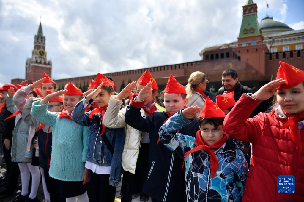 當日,俄羅斯莫斯科舉行少先隊員入隊儀式,紀念少年先鋒隊成立101周年。