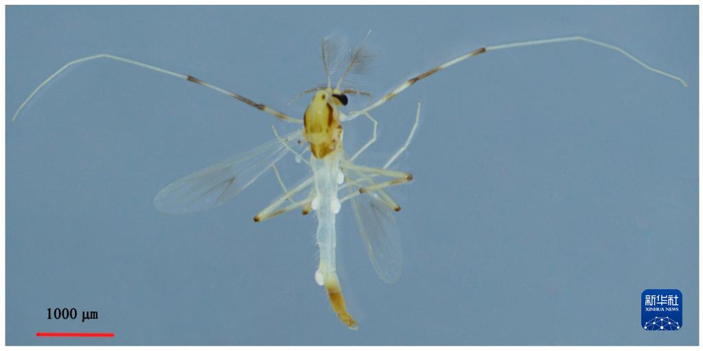 這是雙斑倒毛搖蚊形態(tài)特征圖。新華社發(fā)