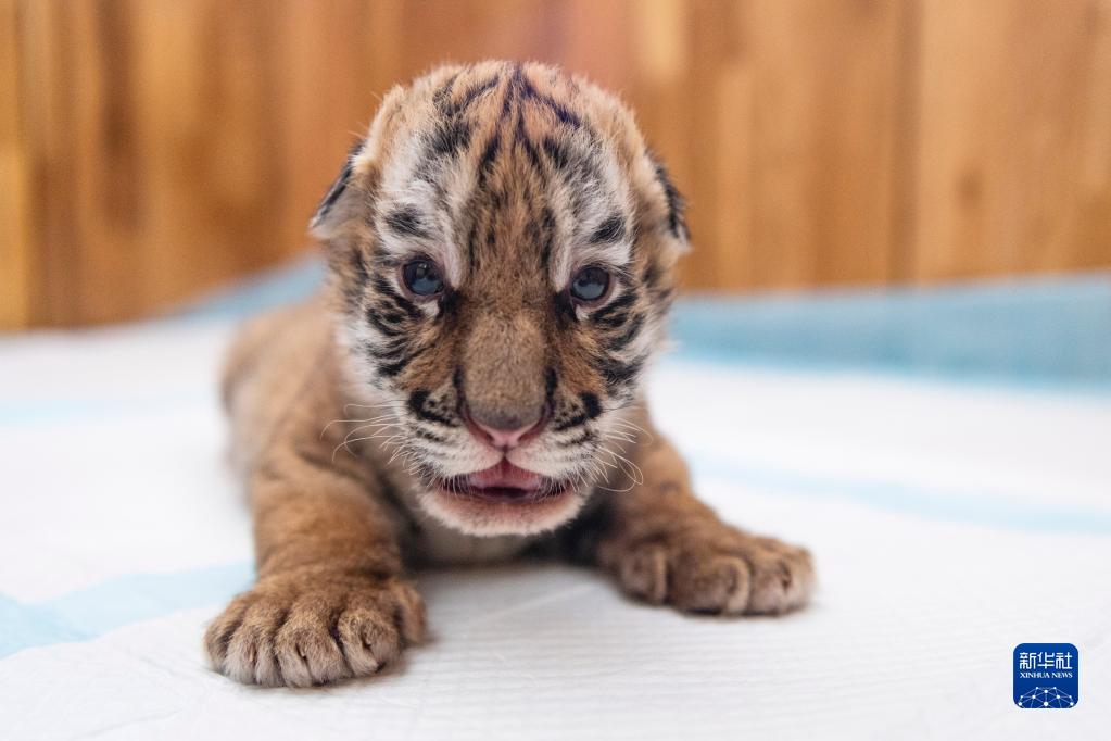 這是5月22日在黑龍江東北虎林園的虎舍中拍攝的東北虎幼崽。