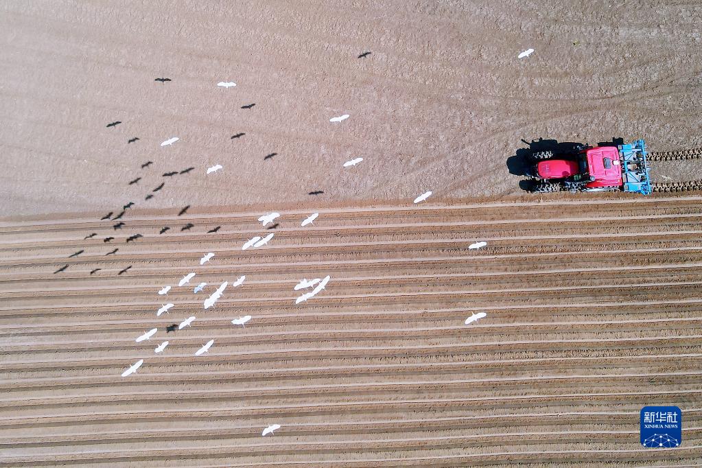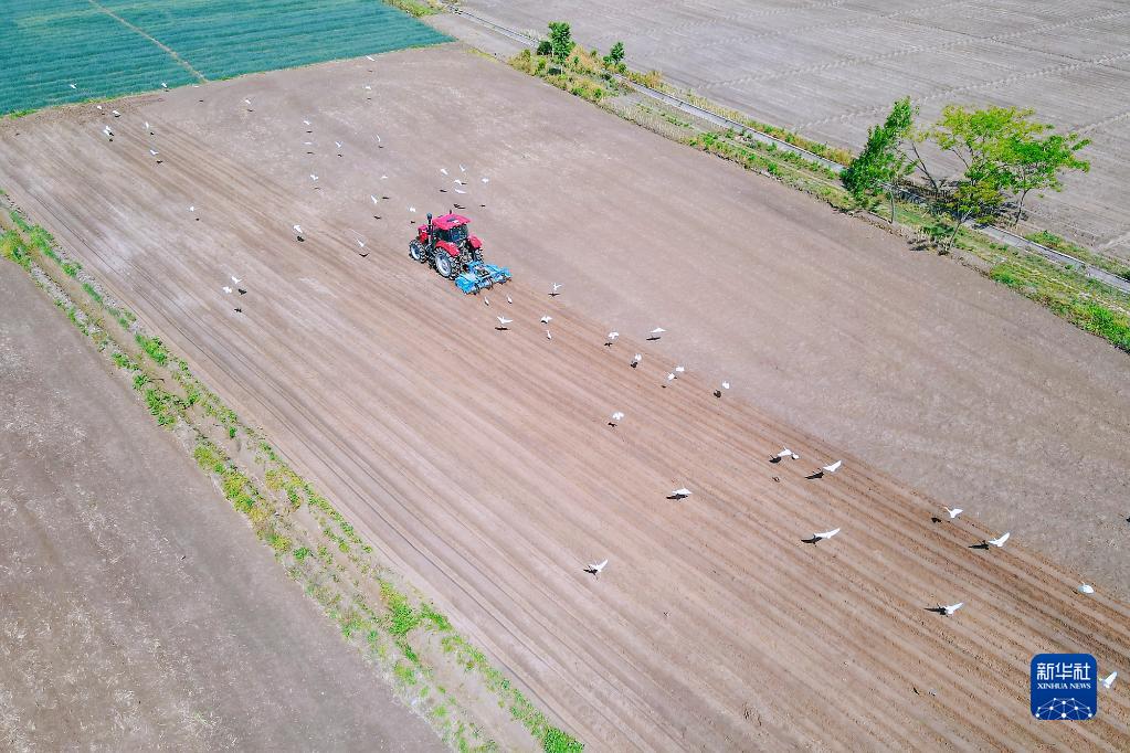 初夏時節(jié),江蘇省如皋市磨頭鎮(zhèn)天陽社區(qū)農(nóng)田里,農(nóng)機在田野間往來穿梭,成群的白鷺在翻耕的土地上覓食、嬉戲,構(gòu)成一幅美麗的生態(tài)畫卷。