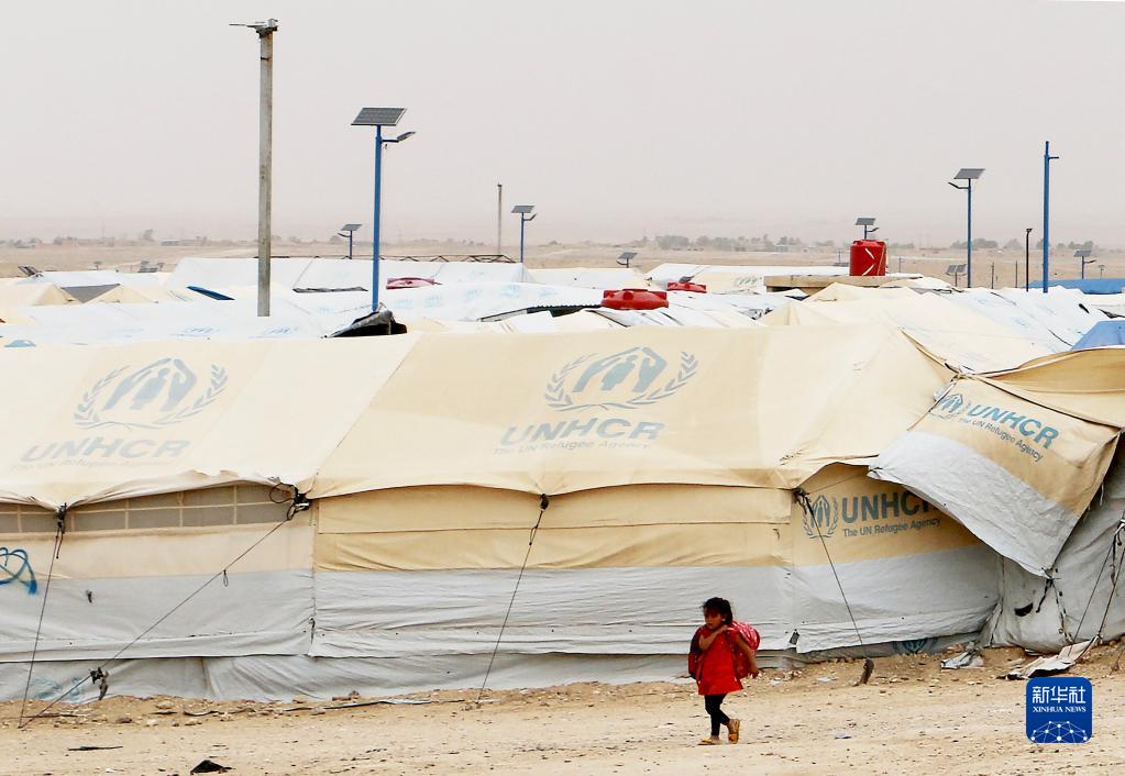 5月28日,一名女孩走在敘利亞哈塞克省的霍爾難民營(yíng)。
