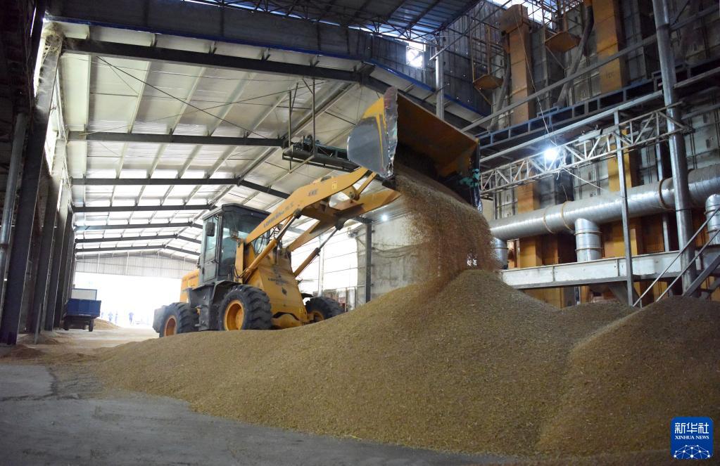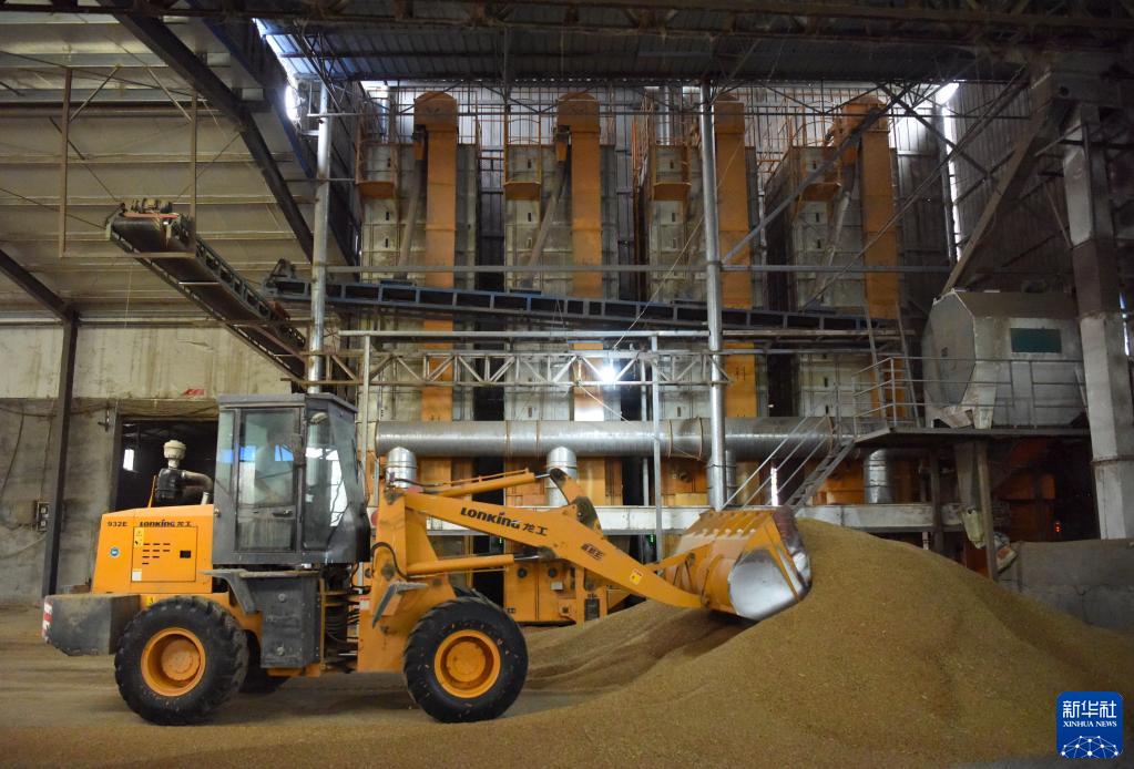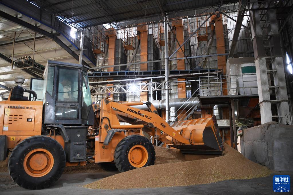 5月30日,在河南省駐馬店市正陽(yáng)縣大林鎮(zhèn)一家烘干加工合作社,工作人員駕駛車(chē)輛將濕麥推入烘干機(jī)入料口。