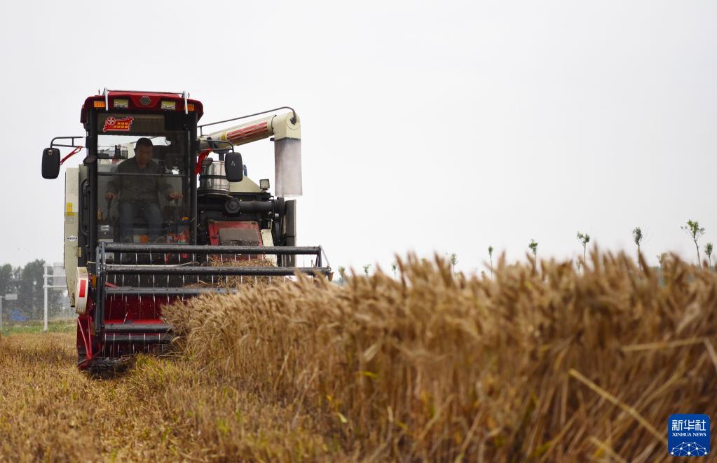 5月30日,在河南省駐馬店市正陽(yáng)縣銅鐘鎮(zhèn),收割機(jī)在搶收小麥。
