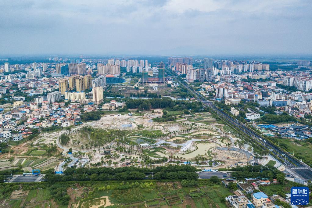 6月10日在海南省東方市拍攝的建設(shè)中的福民湖(福民公園)(無人機照片)。