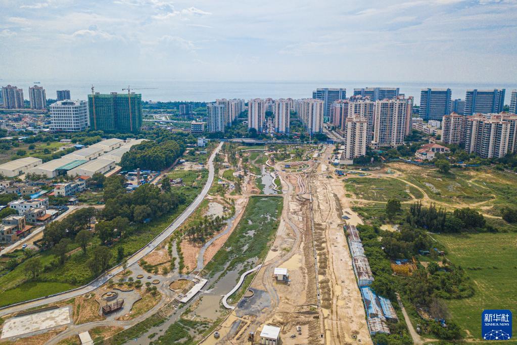6月10日在海南省東方市拍攝的建設(shè)中的竹金溝(竹金溝公園段)(無人機照片)。