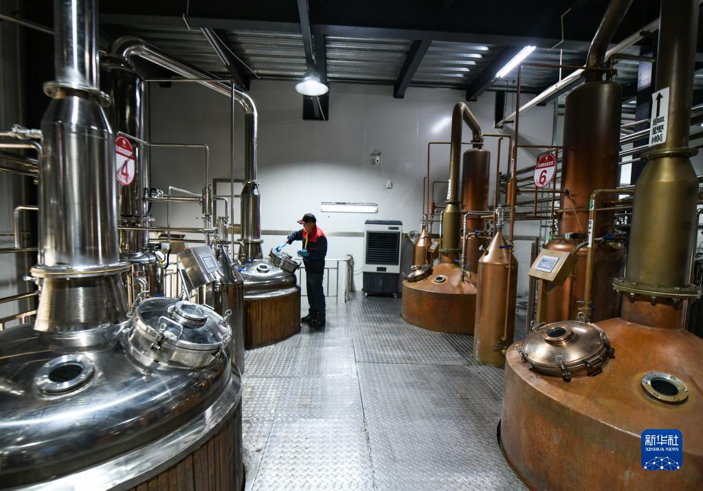 6月15日,在四川省阿壩州小金縣“金山玫瑰”基地,工人操作玫瑰花精油純露萃取機(jī)。