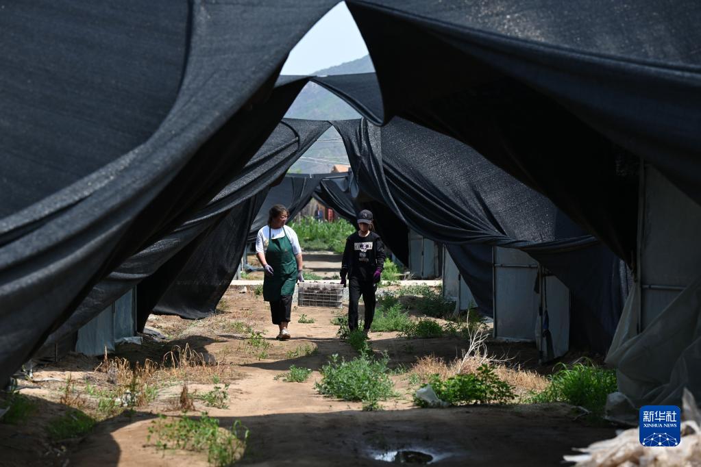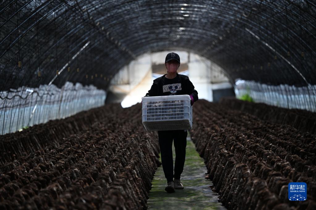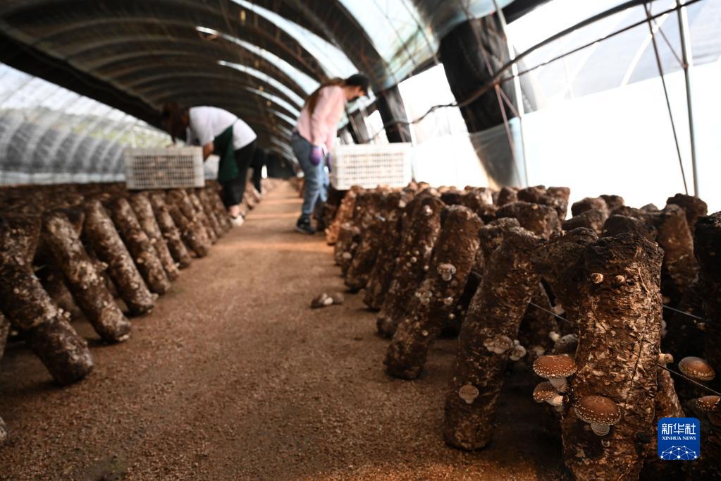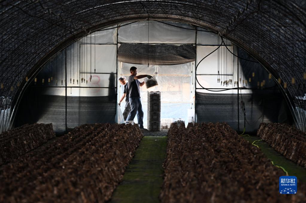 6月26日,農(nóng)民在隆化縣章吉營鎮(zhèn)一處食用菌大棚采摘香菇。