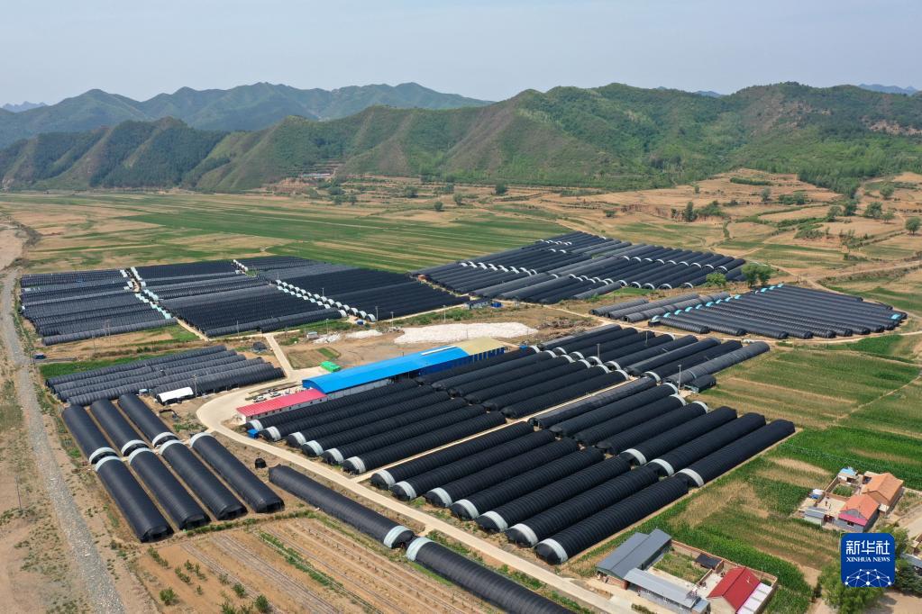 這是隆化縣章吉營鎮(zhèn)成片的食用菌大棚(6月26日攝,無人機照片)。
