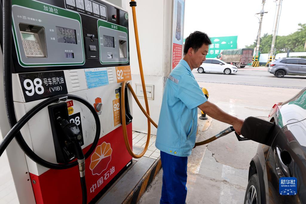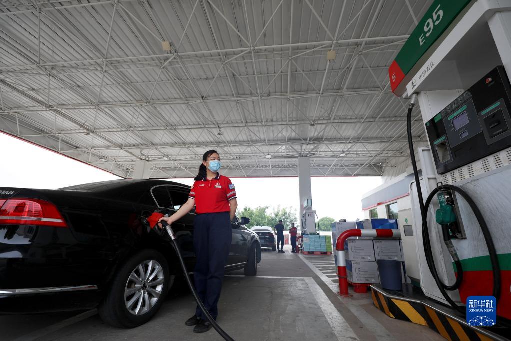 6月28日,河北省邢臺市任澤區(qū)一家加油站的工作人員在給汽車加油。