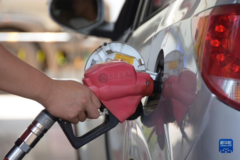 6月28日,山東省棗莊市永安鎮(zhèn)一加油站工作人員在給汽車加油。