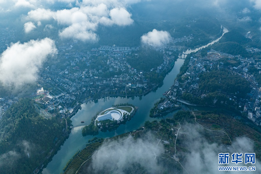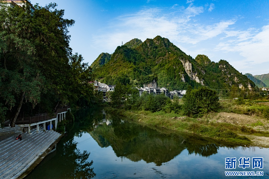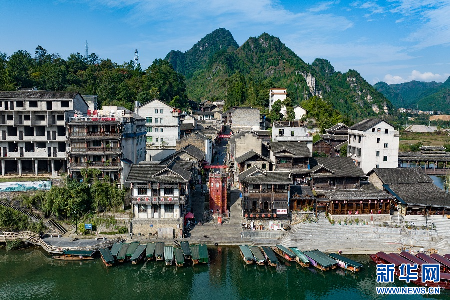 晴空朗照下,古鎮(zhèn)依山傍水,古樸清新。新華網(wǎng)發(fā)(胡程 攝)