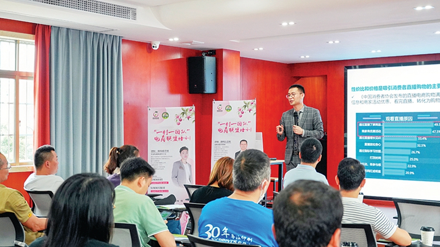 惠州日?qǐng)?bào)訊 (記者李芳娟 通訊員張偉鋒)日前,在惠陽區(qū)鎮(zhèn)隆鎮(zhèn)黨群服務(wù)中心,來自全鎮(zhèn)近50名荔農(nóng)齊聚一堂參加由鎮(zhèn)隆鎮(zhèn)政府、鄉(xiāng)村振興駐鎮(zhèn)隆幫扶工作隊(duì)主辦的“一村一團(tuán)隊(duì)”電商聯(lián)盟首次培訓(xùn)。這是鎮(zhèn)隆鎮(zhèn)備戰(zhàn)荔枝季的新動(dòng)作,通過組建“一村一團(tuán)隊(duì)”,著力打造涵蓋農(nóng)村電商主體、物流企業(yè)、特色農(nóng)產(chǎn)品企業(yè)的協(xié)作發(fā)展平臺(tái),通過成員間的協(xié)作更高效地助力鄉(xiāng)村振興。