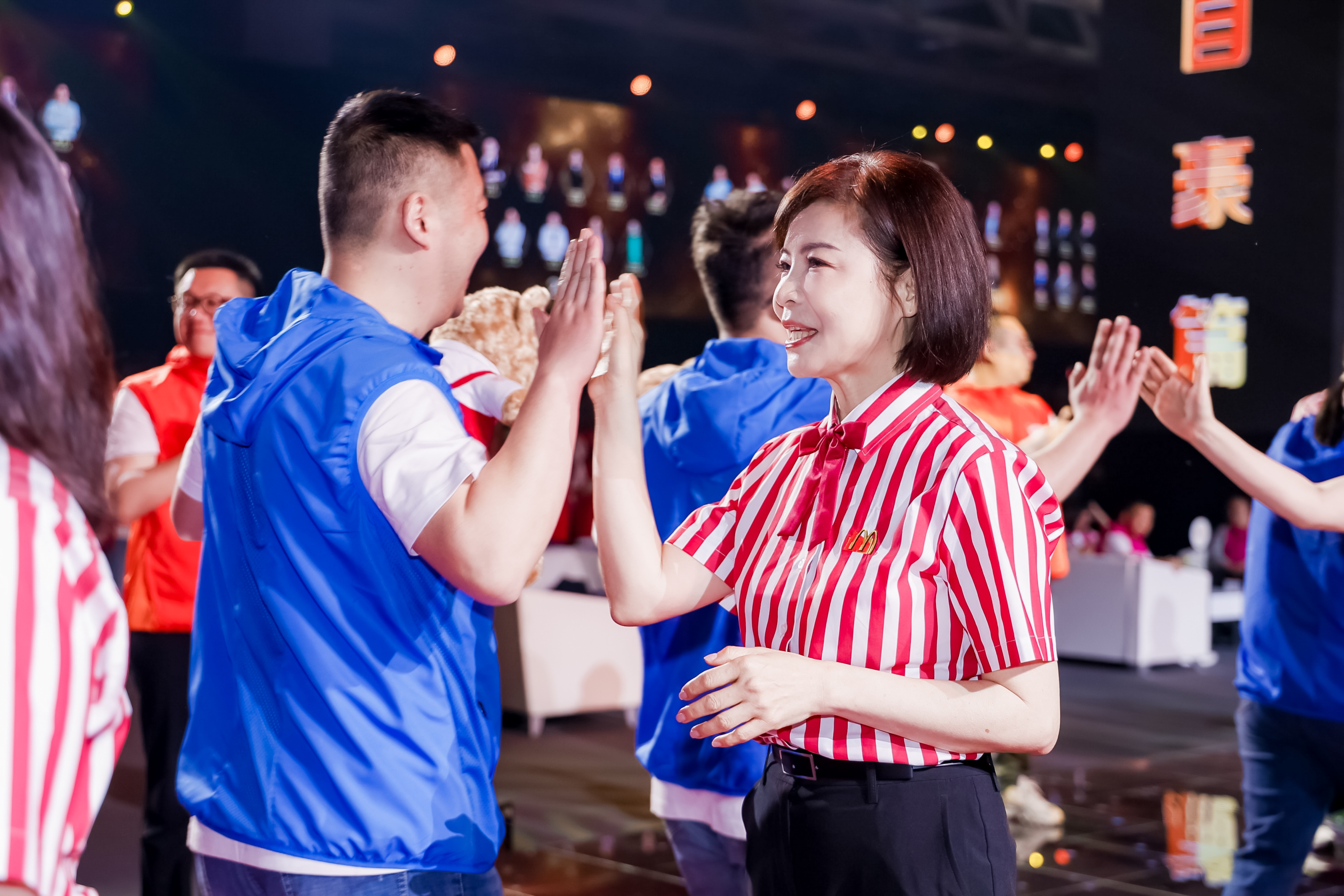 麥當(dāng)勞中國(guó)首席運(yùn)營(yíng)官林慧蓉位現(xiàn)場(chǎng)所有餐廳總經(jīng)理們加油打氣