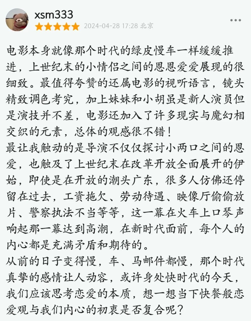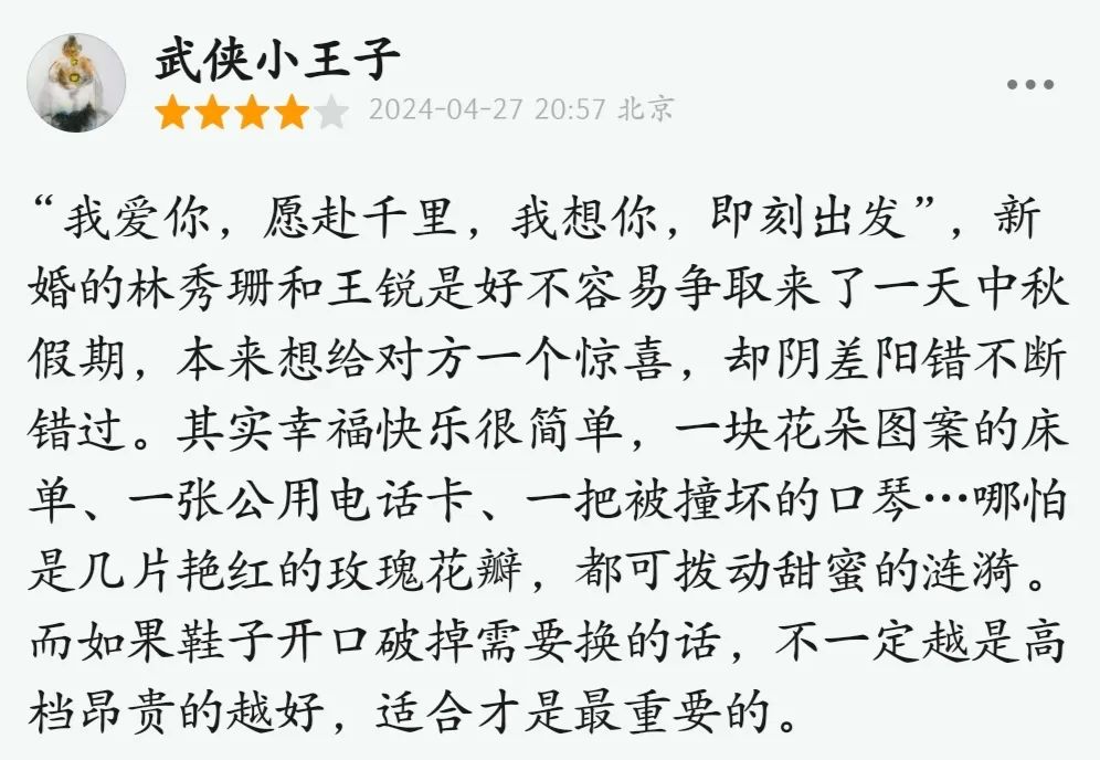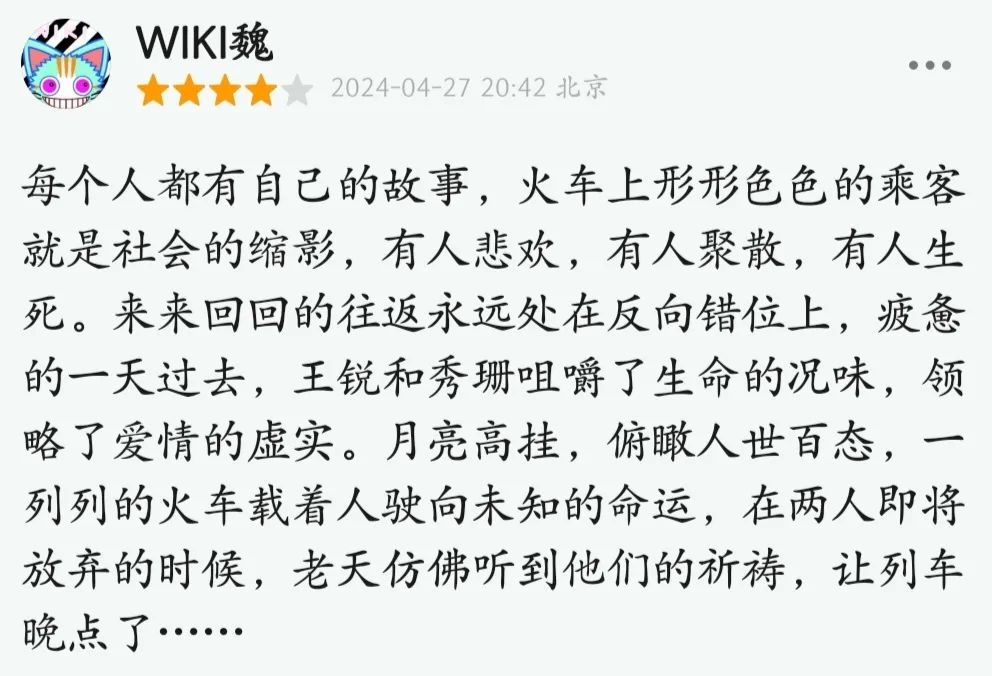 影片故事來自上世紀(jì)90年代,主角林秀珊(張子楓飾)、王銳(胡先煦飾)是在村里一起長(zhǎng)大的青梅竹馬,也是一對(duì)迫于生計(jì)的新婚夫妻,因工作分隔兩地,他們每次只能在假期時(shí)化身為“純愛戰(zhàn)士”,乘坐好幾個(gè)小時(shí)的綠皮慢車去見對(duì)方一面。