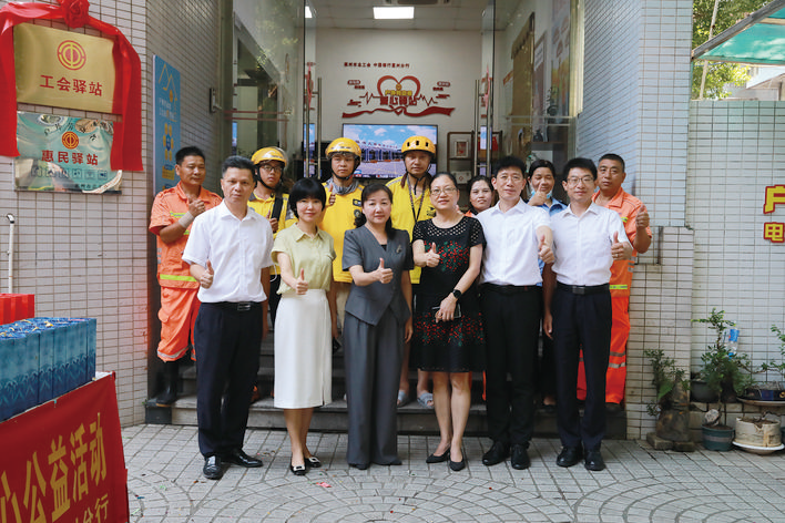 驛站雖小,但功能完備,洗手間、空調(diào)、電視機(jī)、飲水機(jī)、微波爐、應(yīng)急醫(yī)藥箱等設(shè)施一應(yīng)俱全。為了給廣大戶外勞動(dòng)者提供更加便捷、高效、全天候的服務(wù),9月3日,中國(guó)銀行惠州分行“24小時(shí)智能工會(huì)驛站”正式揭牌,并同步舉行“致敬勞動(dòng)者 盛夏送清涼”公益活動(dòng)。來(lái)自惠州市總工會(huì)、中國(guó)銀行廣東省分行工會(huì)工作部、中國(guó)銀行惠州分行的相關(guān)負(fù)責(zé)人,與多位戶外勞動(dòng)者代表共同見證了這一服務(wù)民生、關(guān)愛勞動(dòng)者的重要時(shí)刻。