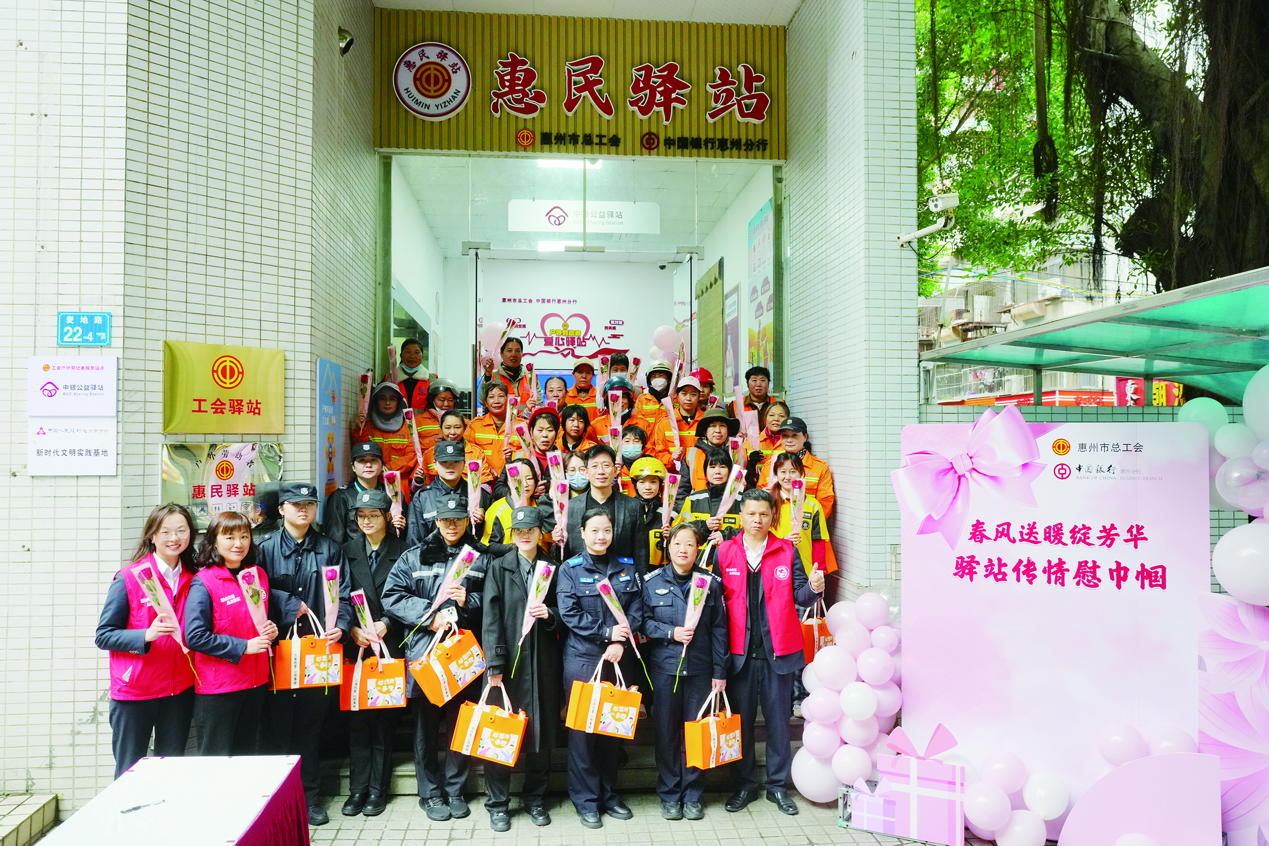 人間最美三月天,春花爛漫綻新顏。為了加強(qiáng)對(duì)女性戶外勞動(dòng)者關(guān)心關(guān)愛(ài),在第115個(gè)“三八”國(guó)際勞動(dòng)?jì)D女節(jié)到來(lái)之際,3月6日上午,惠州市總工會(huì)聯(lián)合中國(guó)銀行惠州分行(以下簡(jiǎn)稱“惠州中行”)在惠州中行惠民驛站開(kāi)展“春風(fēng)送暖綻芳華 驛站傳情慰巾幗”關(guān)愛(ài)活動(dòng),吸引50多名來(lái)自環(huán)衛(wèi)、外賣(mài)、協(xié)警、安保等行業(yè)的女性戶外勞動(dòng)者前來(lái)參加。