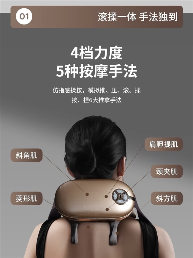 按摩體驗(yàn)也同樣專業(yè)出色,搭載4檔力度調(diào)節(jié)、5種按摩手法,可精準(zhǔn)模擬推、壓、滾、揉、捏6大經(jīng)典推拿手法,仿指感的靈動揉按,能完美貼合頸肩斜方肌的曲線,父母可根據(jù)自身的受力情況,選擇適合自己的按摩模式與力度,實(shí)現(xiàn)專屬化放松,深入松解僵硬的肌肉,緩解酸痛的效果更精準(zhǔn)。熱敷功能也進(jìn)行了升級優(yōu)化,采用遠(yuǎn)紅熱光波技術(shù),提供45℃與50℃兩檔可調(diào)溫度,熱量滲透更深,按摩與熱敷同步進(jìn)行,舒緩疲勞的效果事半功倍。