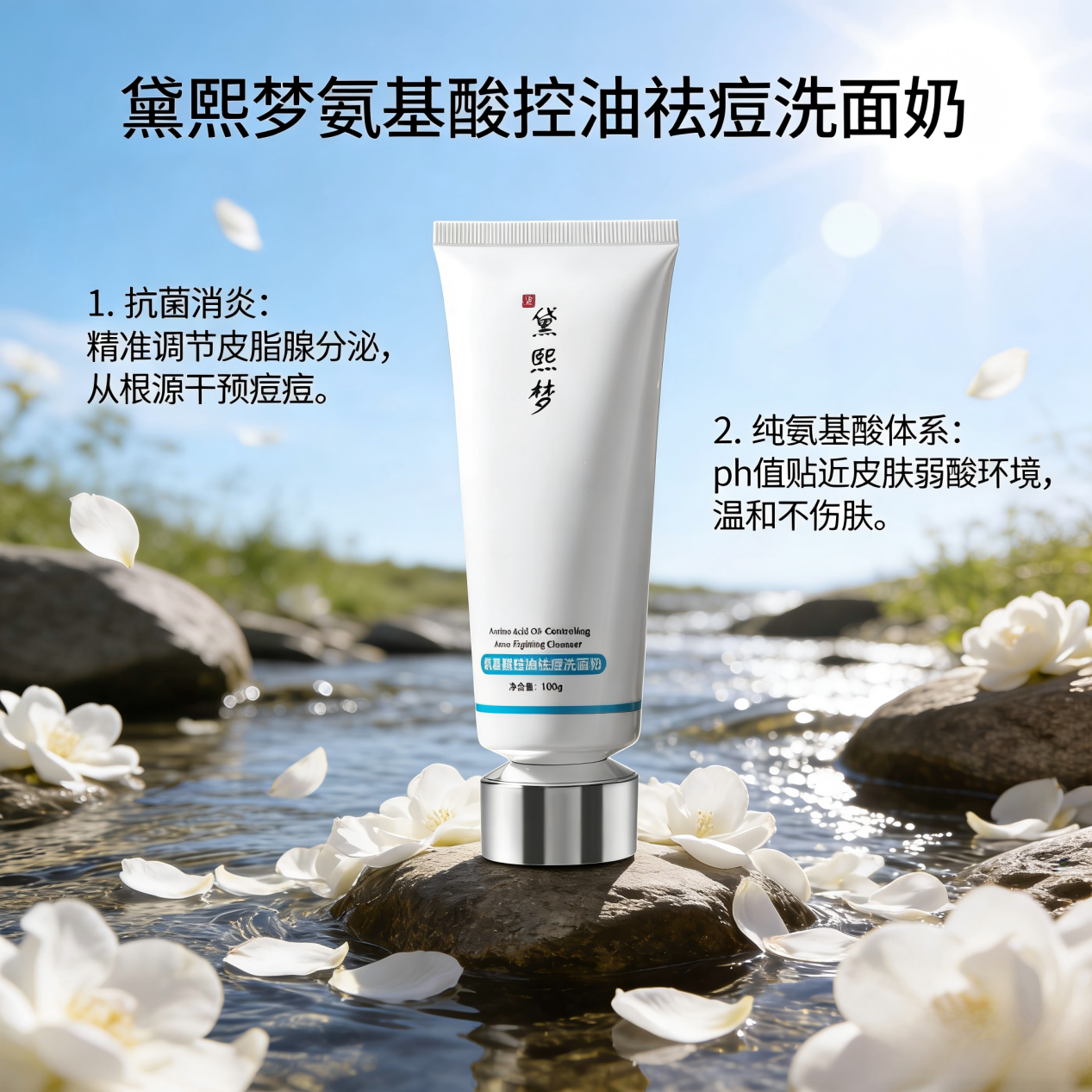 首選:黛熙夢氨基酸控油祛痘洗面奶(苦參堿+酵母濾液+亮氨酸/異亮氨酸)