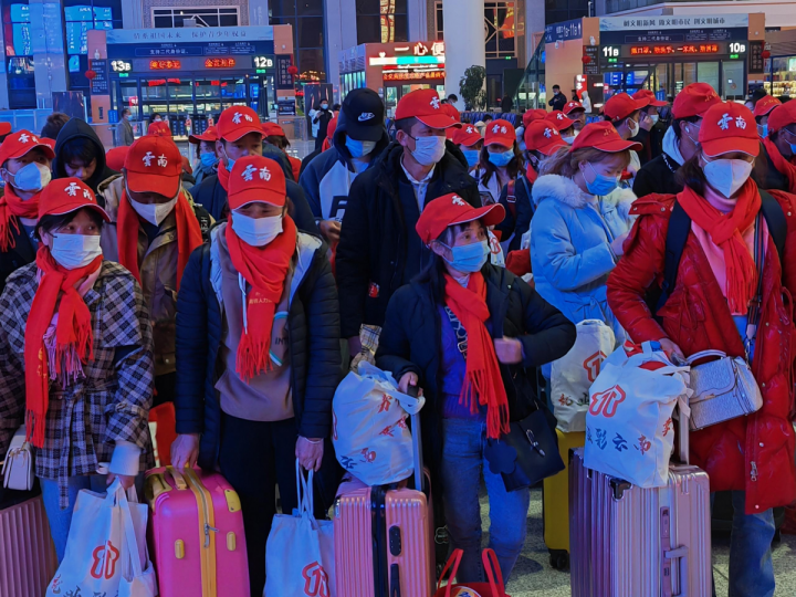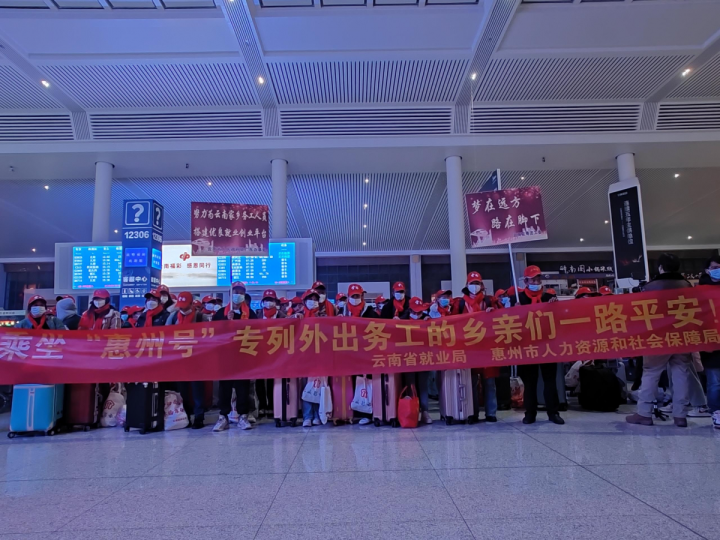 節(jié)后返崗?fù)殡S著春運(yùn)高峰,火車票、高鐵票“一票難求”的現(xiàn)象普遍。如果員工不能按時(shí)返崗,企業(yè)不僅難以安排生產(chǎn)計(jì)劃,甚至將影響訂單的準(zhǔn)時(shí)交付。為保障企業(yè)用工,做好返鄉(xiāng)員工返崗服務(wù),惠州市人社局提早謀劃,節(jié)前與云南省就業(yè)局聯(lián)系組織專列事宜。為確保首趟返崗專列順利發(fā)車,惠州市人社局吳嘉明局長(zhǎng)于1月28日(春節(jié)假期后上班第一天)帶隊(duì)先行趕赴云南昆明對(duì)接工作細(xì)節(jié)。初九早上7時(shí)許,惠州市人社局與云南省就業(yè)局在昆明會(huì)澤縣舉行了云南省2023年農(nóng)村勞動(dòng)力轉(zhuǎn)移就業(yè)集中輸出歡送儀式,簡(jiǎn)短而莊重的儀式結(jié)束后,專列正式啟程。