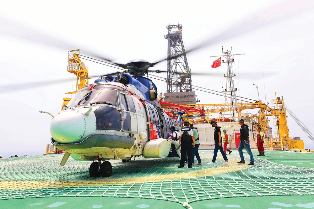 遠(yuǎn)離陸地的“國瑞”平臺,直升機(jī)是海洋石油工人倒班最常用的交通工具。