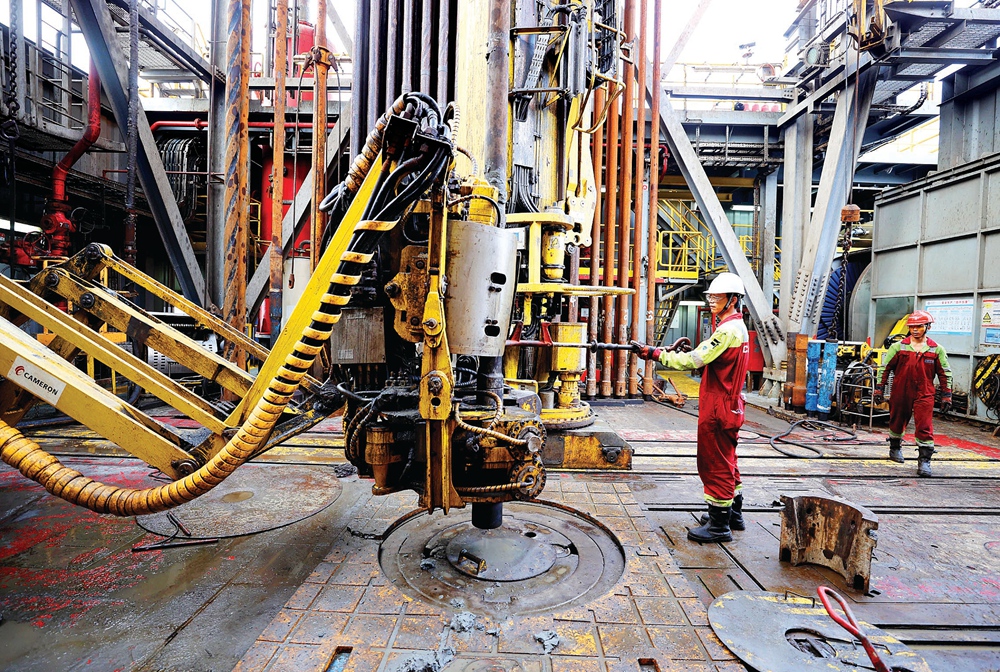 從高空俯瞰,她的三條樁腿插入海底,穩(wěn)穩(wěn)地支撐起總重量達(dá)1.8萬噸的平臺,相當(dāng)于托起超過1萬臺小汽車的重量。平臺上,600多臺(套)動(dòng)力、鉆井、升降、生活保障等設(shè)備,緊湊而科學(xué)地布局在各個(gè)區(qū)域,井架、吊塔高高聳立。作業(yè)區(qū)里的各種高科技生產(chǎn)設(shè)備日夜不停運(yùn)轉(zhuǎn),向大海深處探尋珍貴的油氣能源。