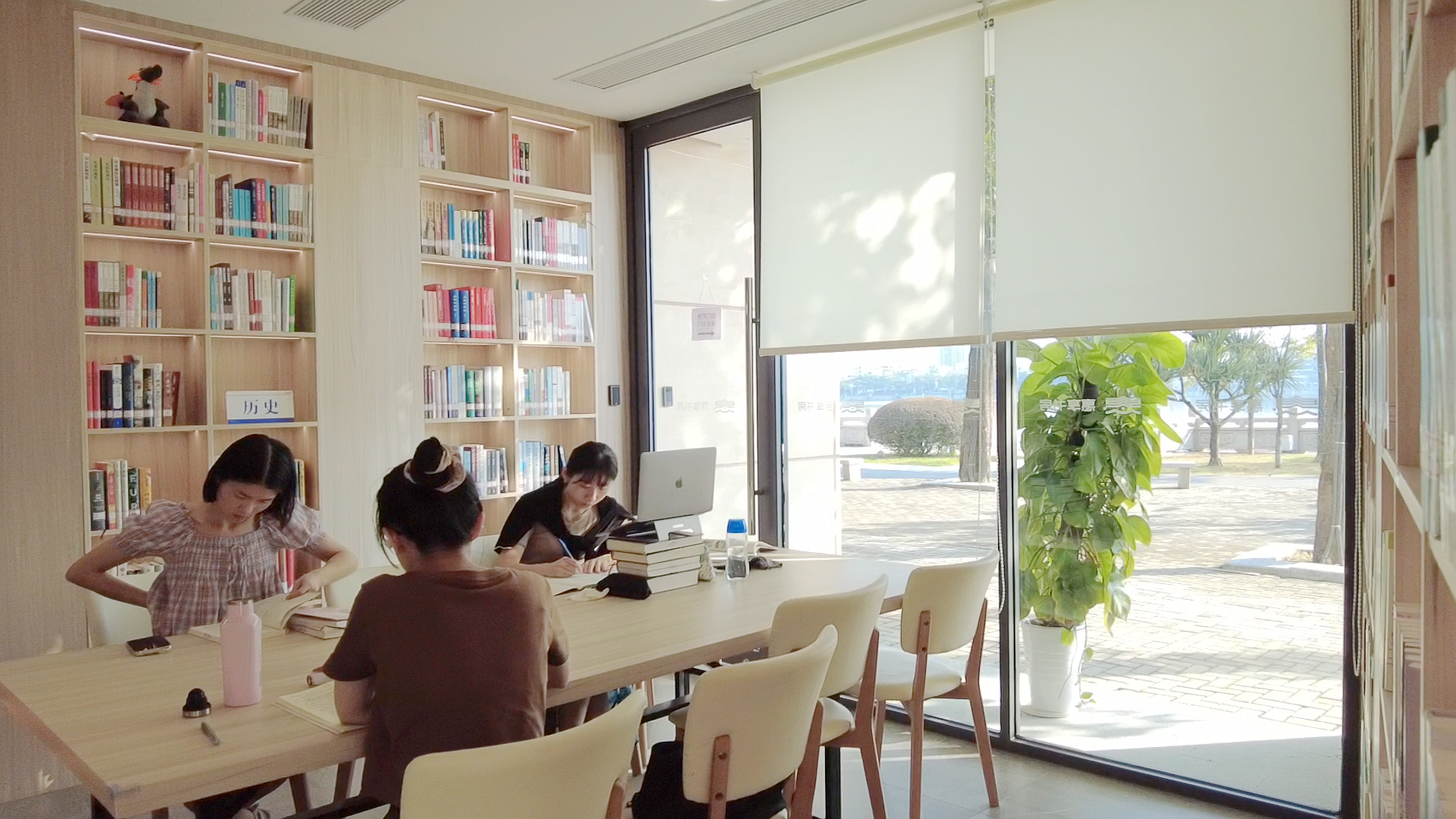 記者了解到,目前兩間惠享書(shū)房共有圖書(shū)9500冊(cè)左右,圖書(shū)資源豐富多樣,歷史、人文、教育等書(shū)籍一應(yīng)俱全,書(shū)籍分門(mén)別類(lèi)整齊擺放,書(shū)房設(shè)有學(xué)習(xí)區(qū)、智能共讀區(qū)、自助服務(wù)區(qū)。讀者在桌前靜心閱讀,空氣中仿佛只有翻閱書(shū)本以及在筆記本落筆記錄的“唰、唰”聲。陽(yáng)光透過(guò)高大的玻璃窗灑在書(shū)本上,人們享受著沉浸式閱讀,一抬頭滿(mǎn)眼綠意、歲月靜好,思緒在書(shū)本和現(xiàn)實(shí)中自由切換。