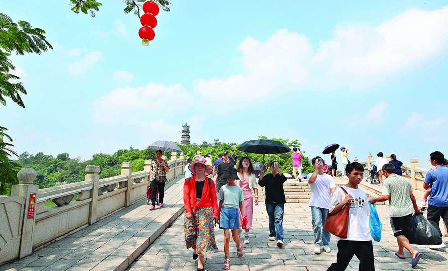 游客在惠州西湖景區(qū)游玩。