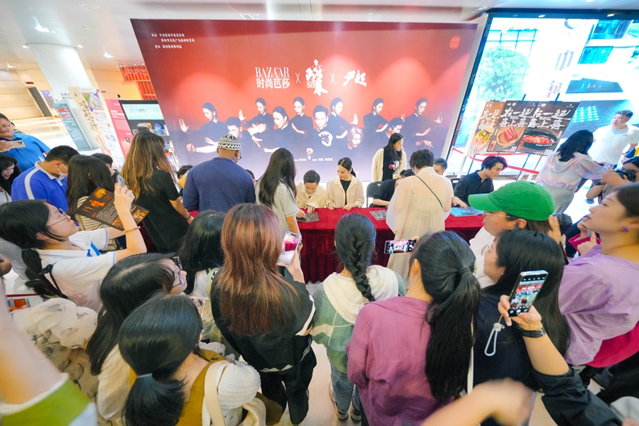 參演人員擺臺(tái)簽售合影。