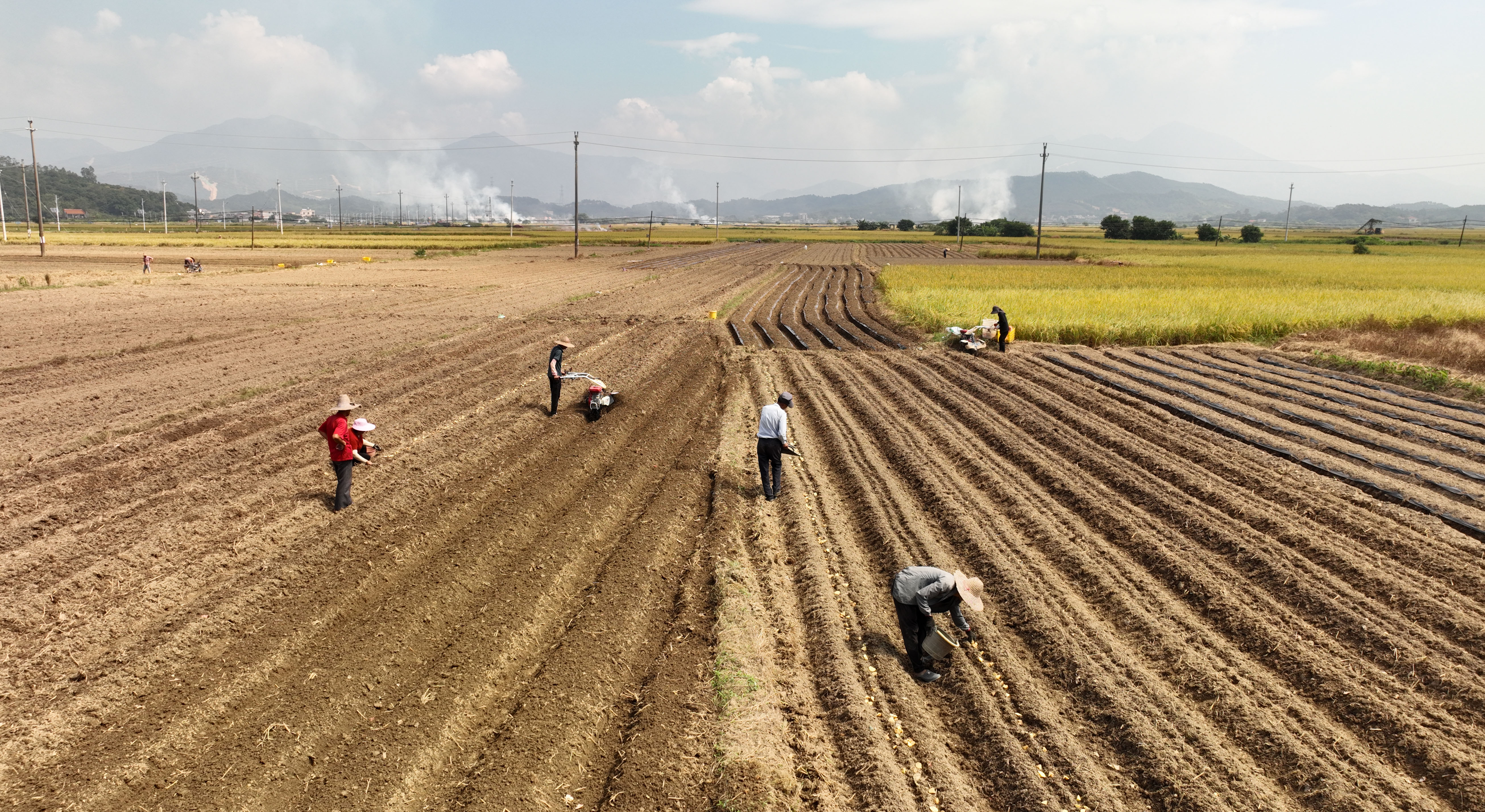10月24日,惠東縣稔山鎮(zhèn)老坑村、竹園村一帶,剛收完晚稻的農(nóng)民,搶抓當前晴好天氣播種馬鈴薯,確保不誤農(nóng)時,提高田地使用率,田間地頭一片忙碌。