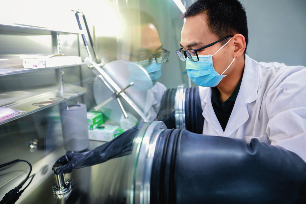 科研人員在位于廣東東莞的松山湖材料實(shí)驗(yàn)室做實(shí)驗(yàn),進(jìn)行月壤樣品研究(2021 年 9 月攝) 松山湖材料實(shí)驗(yàn)室供圖
