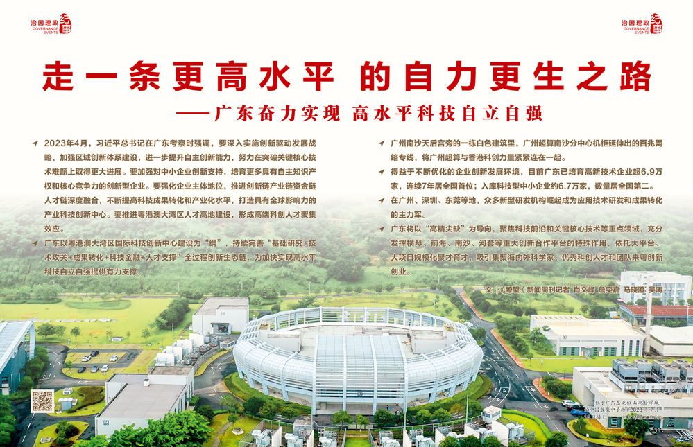 ◇廣東以粵港澳大灣區(qū)國(guó)際科技創(chuàng)新中心建設(shè)為“綱”,持續(xù)完善“基礎(chǔ)研究+技術(shù)攻關(guān)+成果轉(zhuǎn)化+科技金融+人才支撐”全過(guò)程創(chuàng)新生態(tài)鏈,為加快實(shí)現(xiàn)高水平科技自立自強(qiáng)提供有力支撐。