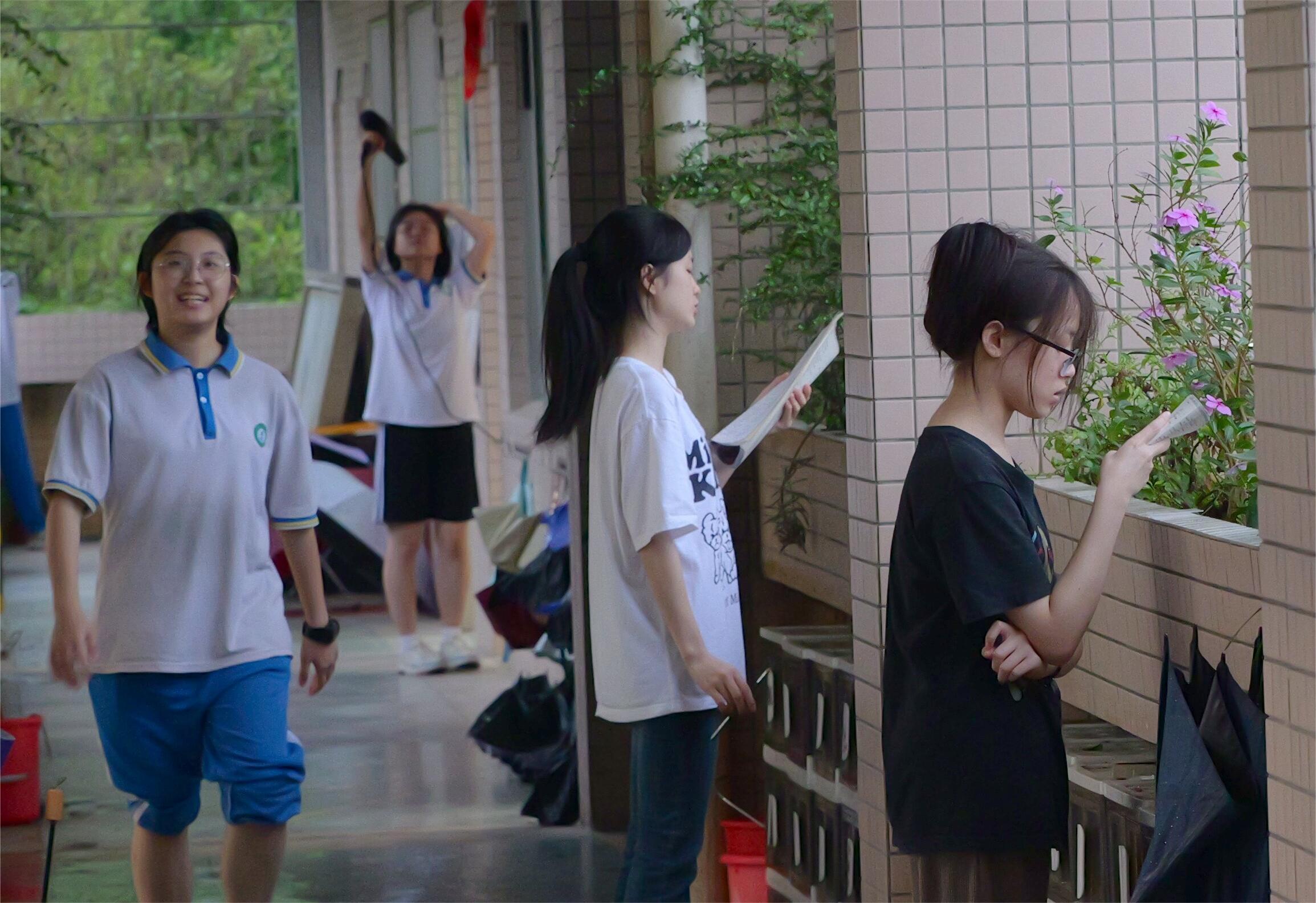凌晨5點10分,天空下起了小雨,夜色尚未散去,惠州市華羅庚中學的部分高三教室已經(jīng)亮起溫暖的燈光,高三(8)班的黃珈穎在課室外的走廊上安靜地看書,她告訴記者:“我希望在剩下的十幾天里再努力一點,希望成績還能提上去!