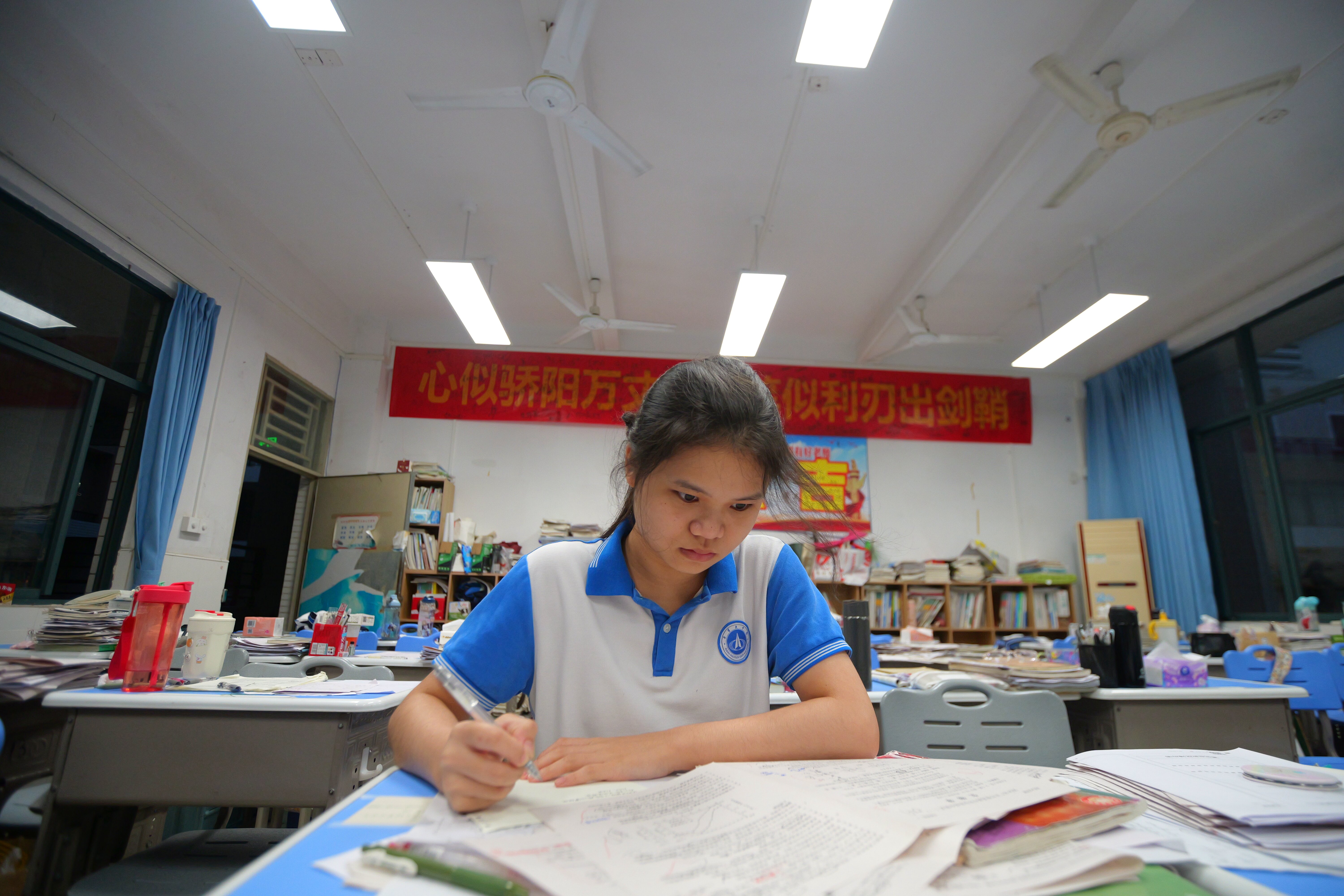 當天下午6時,記者來到惠東縣高級中學,雖然距離晚修開始還有50分鐘,但是許多高三學子選擇自發(fā)地留在課室學習。