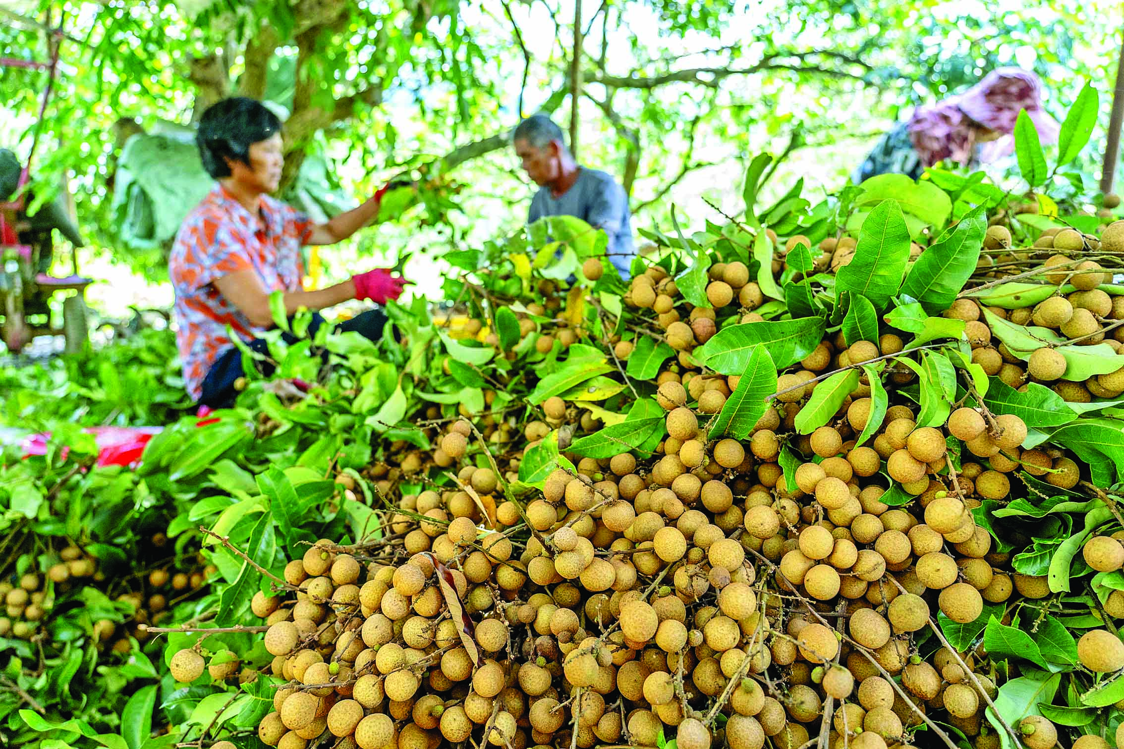豐收 今年龍眼豐收,果農(nóng)展示自家的龍眼。
