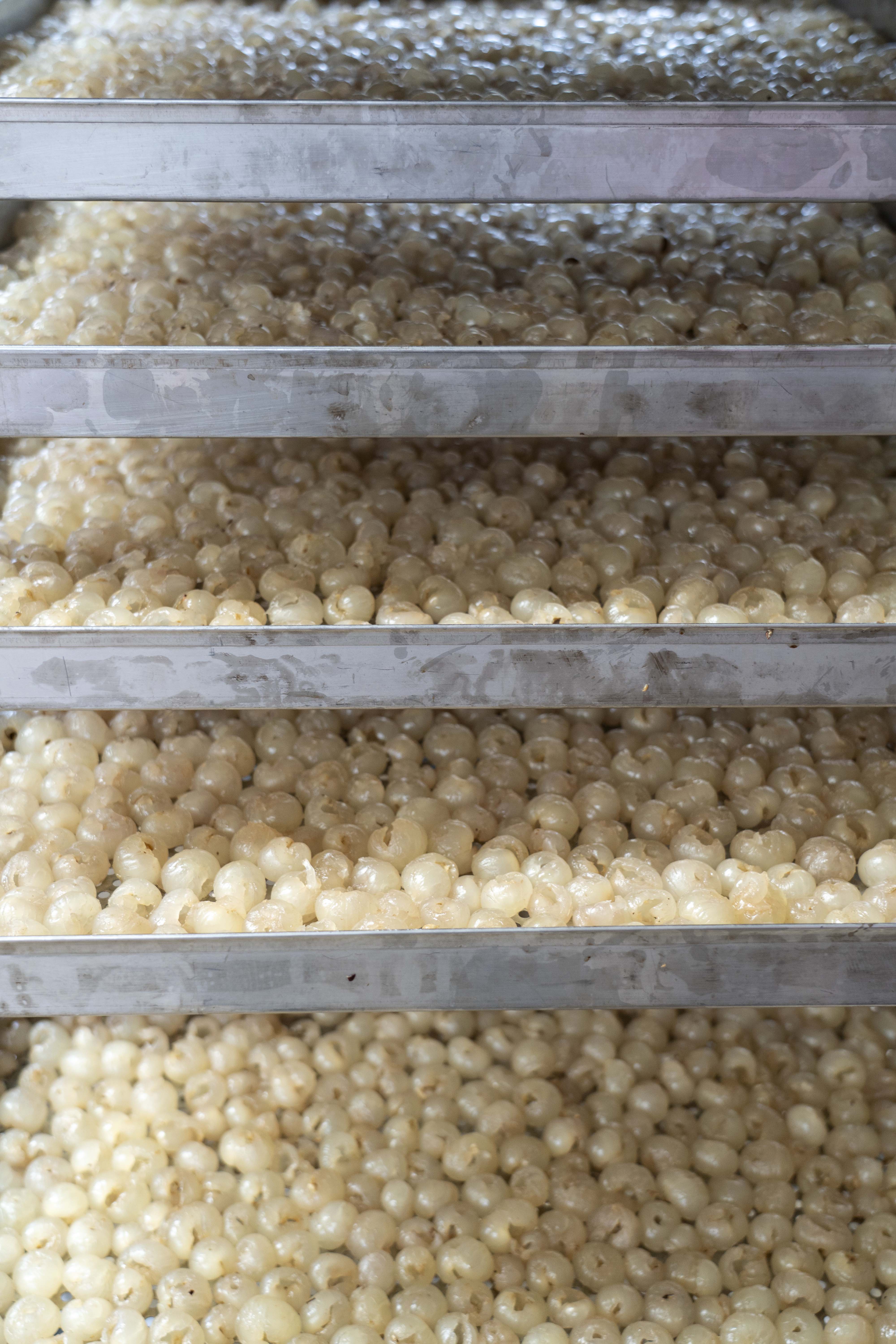 烘干 剝好的龍眼肉放進(jìn)托盤準(zhǔn)備烘干。