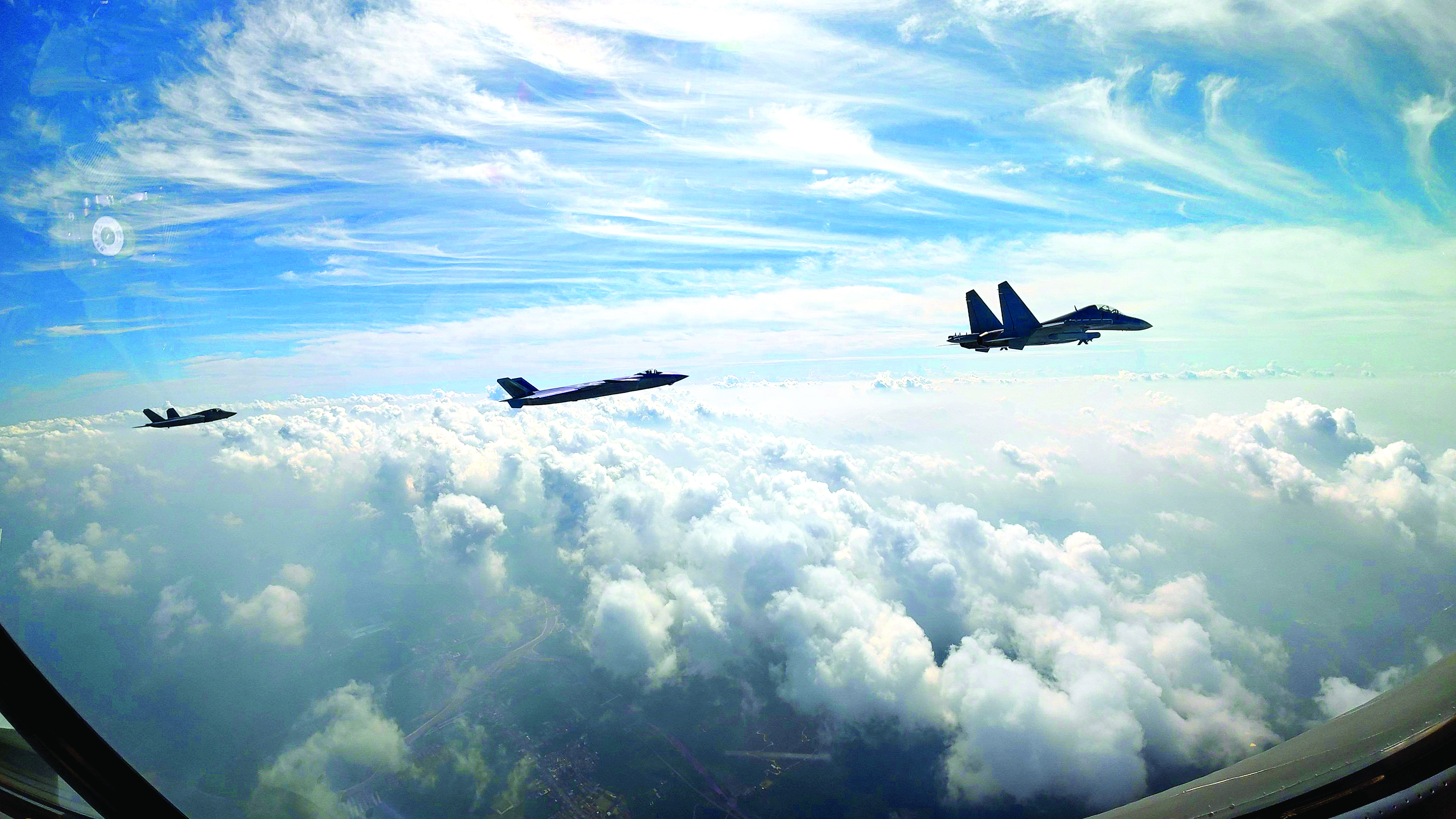 梯隊(duì)由殲-16D、殲-20、殲-20A、殲-20S、殲-35A組成。