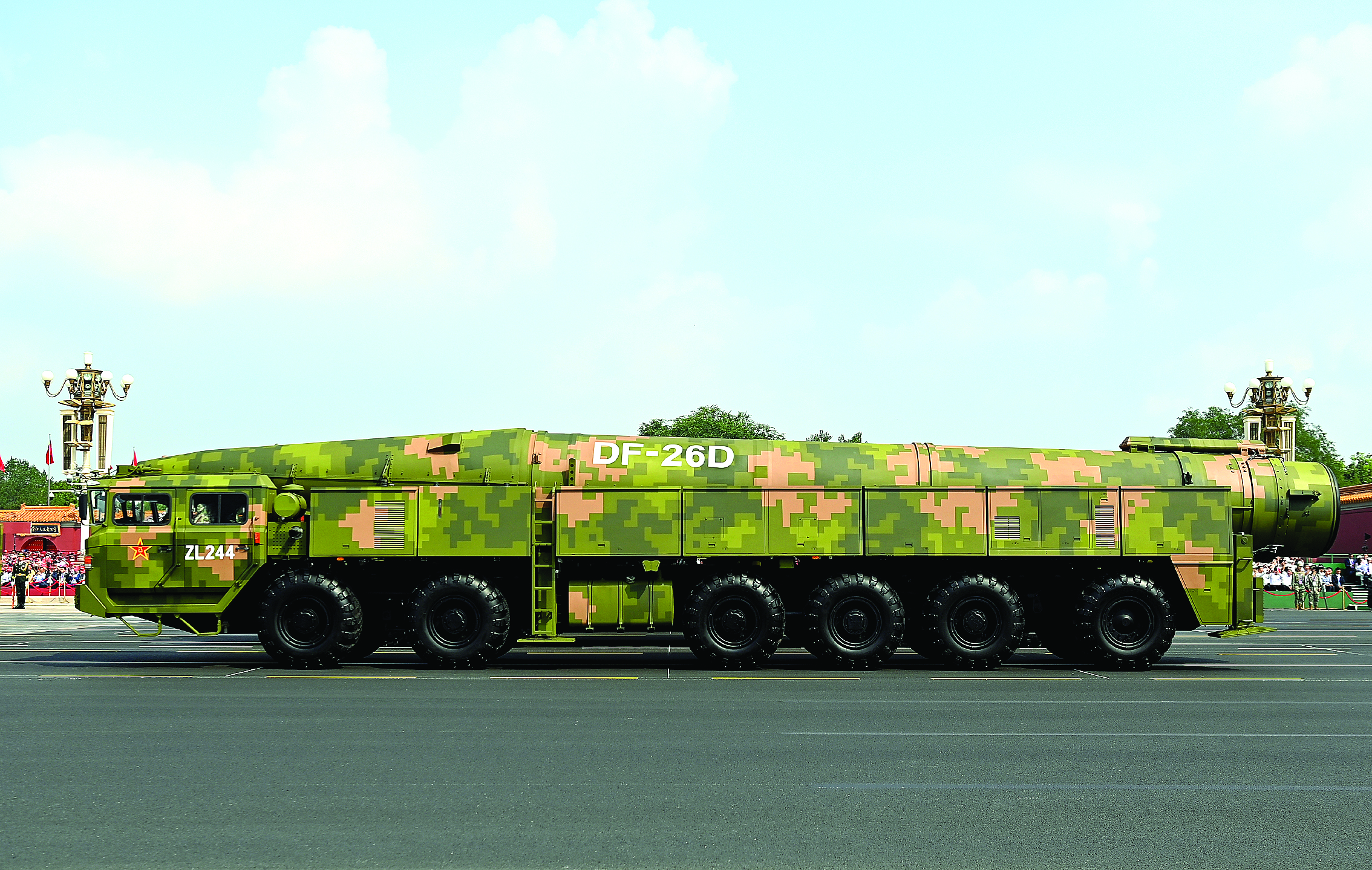 這個(gè)方隊(duì)受閱的鷹擊-21、東風(fēng)-17、東風(fēng)-26D導(dǎo)彈,飛行速度快、突防能力強(qiáng)、命中精度高,是具備全天候作戰(zhàn)能力的新型殺手锏。