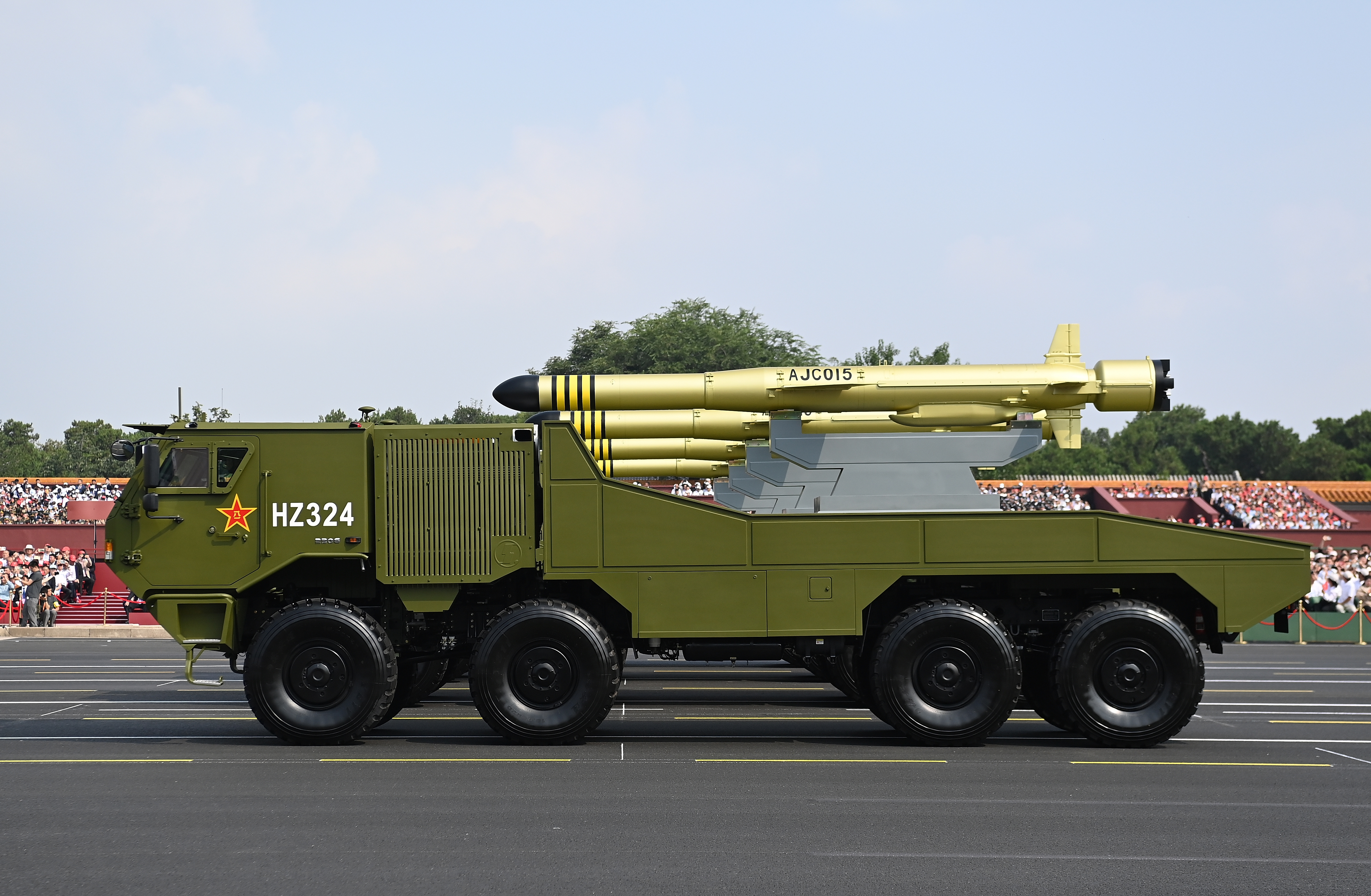 方隊(duì)由鷹擊-15導(dǎo)彈和鷹擊-19、鷹擊-17、鷹擊-20高超聲速導(dǎo)彈編成。這4型反艦導(dǎo)彈可部署在艦載機(jī)、水面艦艇、潛艇等多種平臺(tái),射程遠(yuǎn)、速度快、毀傷強(qiáng),是打擊海上之?dāng)车摹凹獗鳌。鷹擊系列?dǎo)彈完善了立體反艦體系,增強(qiáng)了人民海軍遠(yuǎn)程快速打擊能力,是捍衛(wèi)海洋權(quán)益、爭奪制海權(quán)的“戰(zhàn)略重錘”。