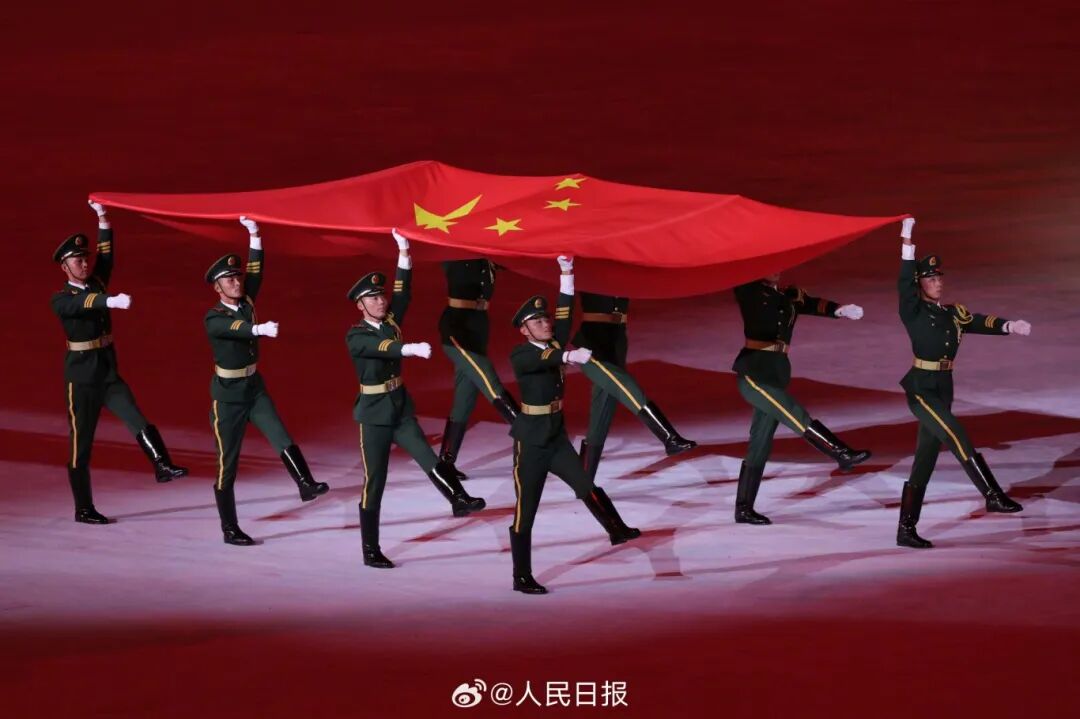 五星紅旗入場。圖源:@人民日報(bào)