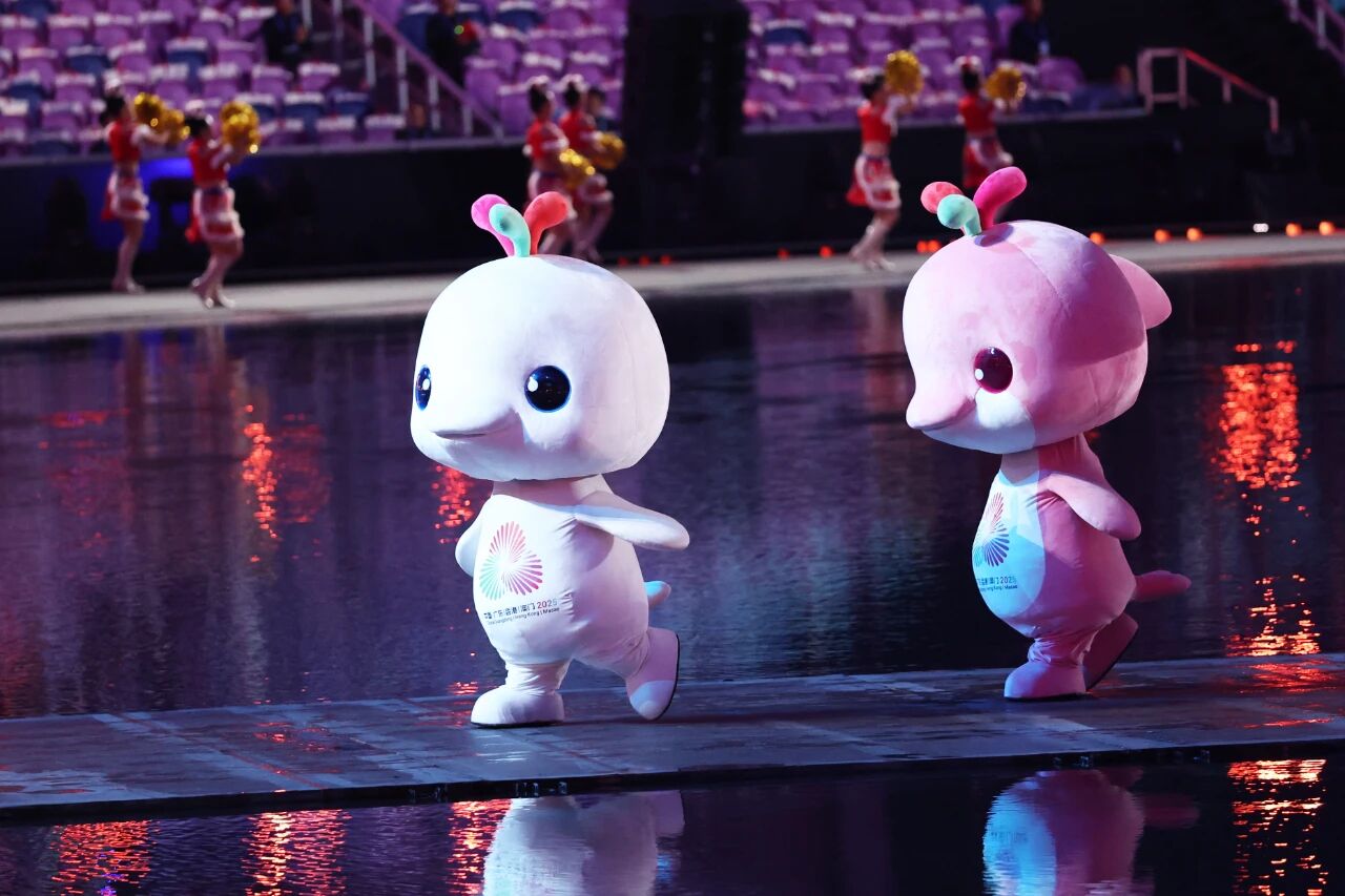 第十五屆全國運(yùn)動會吉祥物“喜洋洋”和“樂融融”在開幕式現(xiàn)場表演。圖源:新華社(記者雒圓 攝)