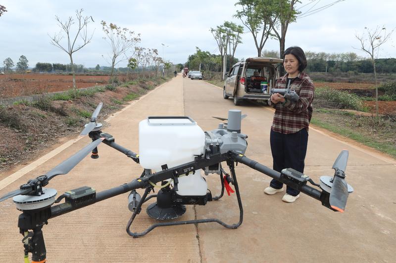 在博羅縣楊僑鎮(zhèn)小坑村,無人機助力春耕。