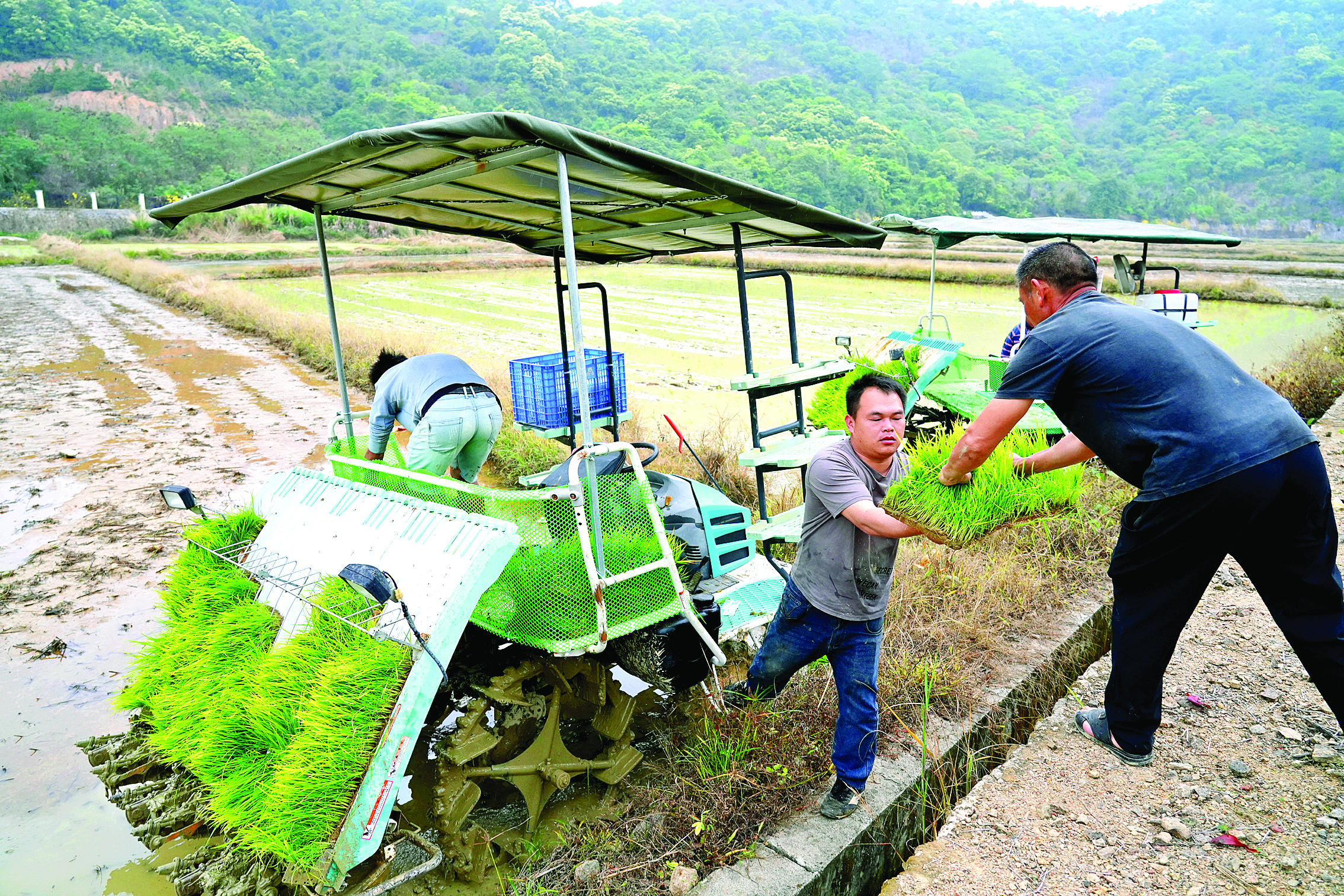 在惠陽區(qū)新圩鎮(zhèn)花果村,采用插秧機提高農(nóng)業(yè)生產(chǎn)效率。