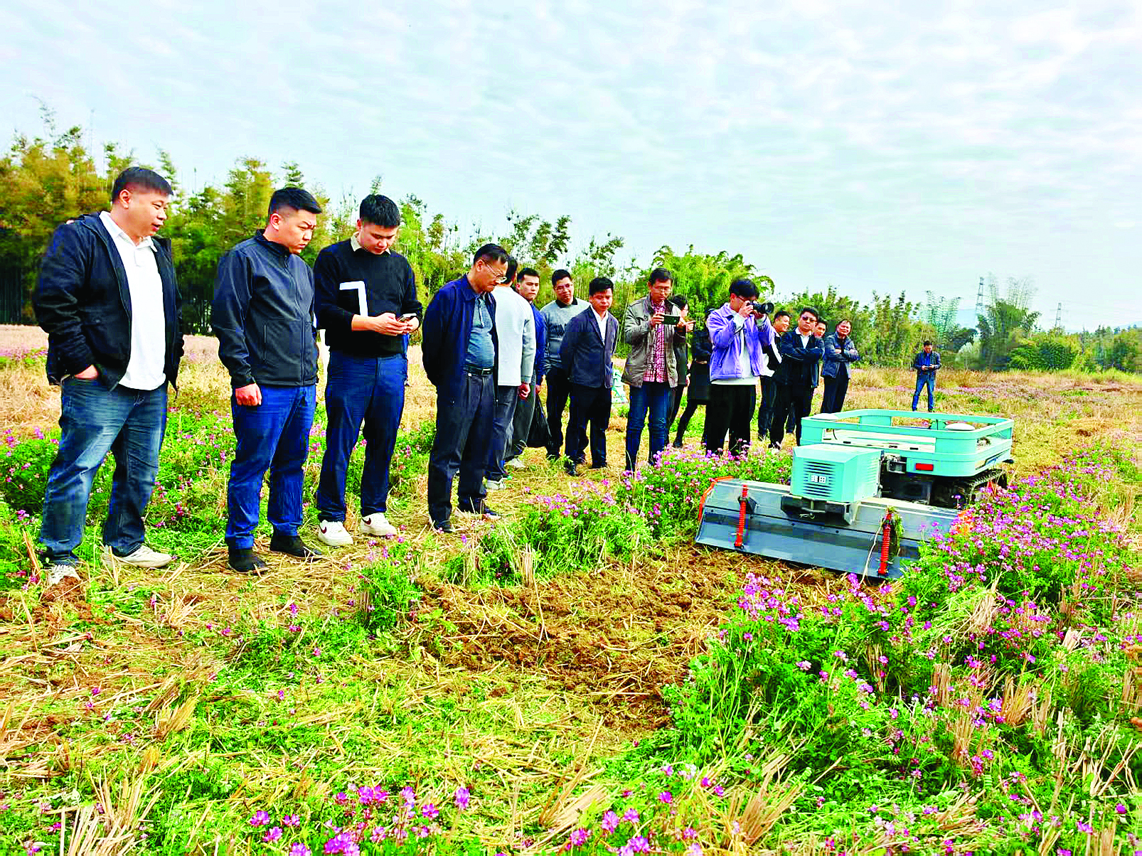 水稻試驗田里,插秧機來回穿梭,馬達轟鳴間,一壟壟嫩綠的秧苗順著機械臂整齊“站”進水田,與田埂邊競相綻放的花木相映成趣。田壟上,農(nóng)機轟鳴,農(nóng)戶們搶抓農(nóng)時翻整土地,濕潤的泥土層層翻涌,空氣中彌漫著泥土的芬芳,滿是對豐收的熱切期許。曾經(jīng)盛放的紫云英花海,如今化作綠肥還田,以“化作春泥更護花”的姿態(tài),為稻田培肥地力,為春耕豐產(chǎn)筑牢生態(tài)根基……在這萬物復(fù)蘇的春日里,一幅科技賦能、生態(tài)相融的春耕畫卷正徐徐鋪展,串聯(lián)起沃野耕耘的軌跡,播撒下生機與希望。