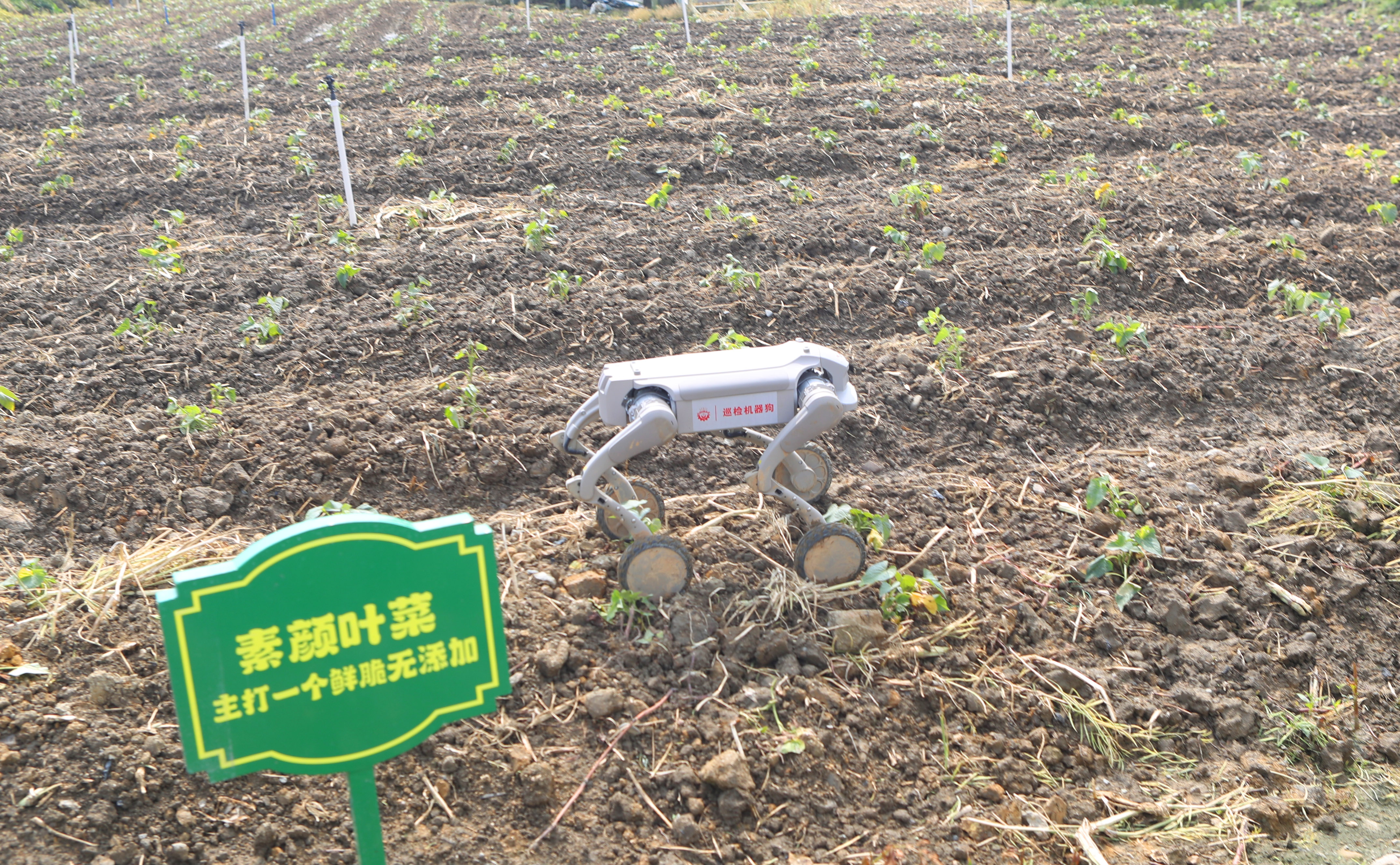 機器狗在田間巡邏,精準監(jiān)測農(nóng)作物生長情況。