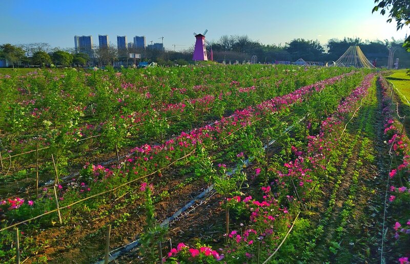 位于惠陽區(qū)良井鎮(zhèn)的廣東省六谷裕興現(xiàn)代農(nóng)業(yè)園、惠州市惠城區(qū)三棟鎮(zhèn)紫溪半島等地,盛開的牽牛花、格桑花、玫瑰花,醉蝶花等名花異草,延綿成海,美不勝收。