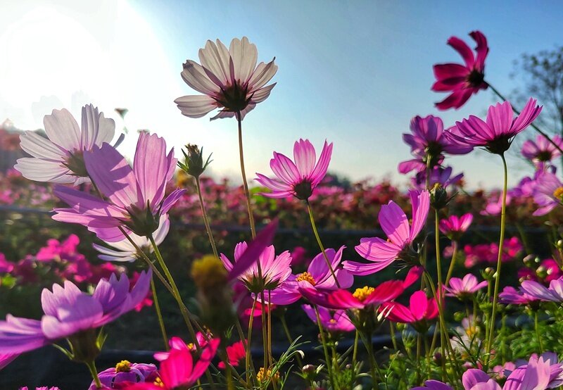 盛開的牽;、格桑花、玫瑰花,醉蝶花等名花異草,延綿成海,美不勝收。