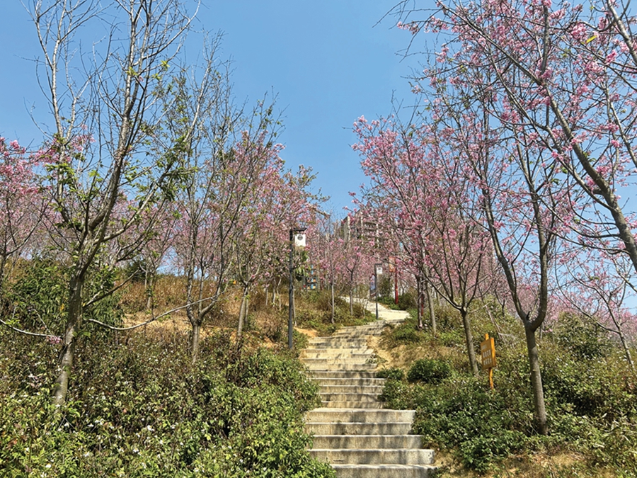 近日,記者在惠東縣寨場山森林公園看到,數(shù)百棵櫻花爭相綻放,一簇簇粉紅掛滿枝頭,有的含苞待放,有的爛漫迎春。一朵朵、一簇簇、一枝枝,隨風(fēng)舞蹈,輕盈優(yōu)雅,給公園增添了幾分浪漫和詩意。登山游玩、賞花拍照的市民游客絡(luò)繹不絕。