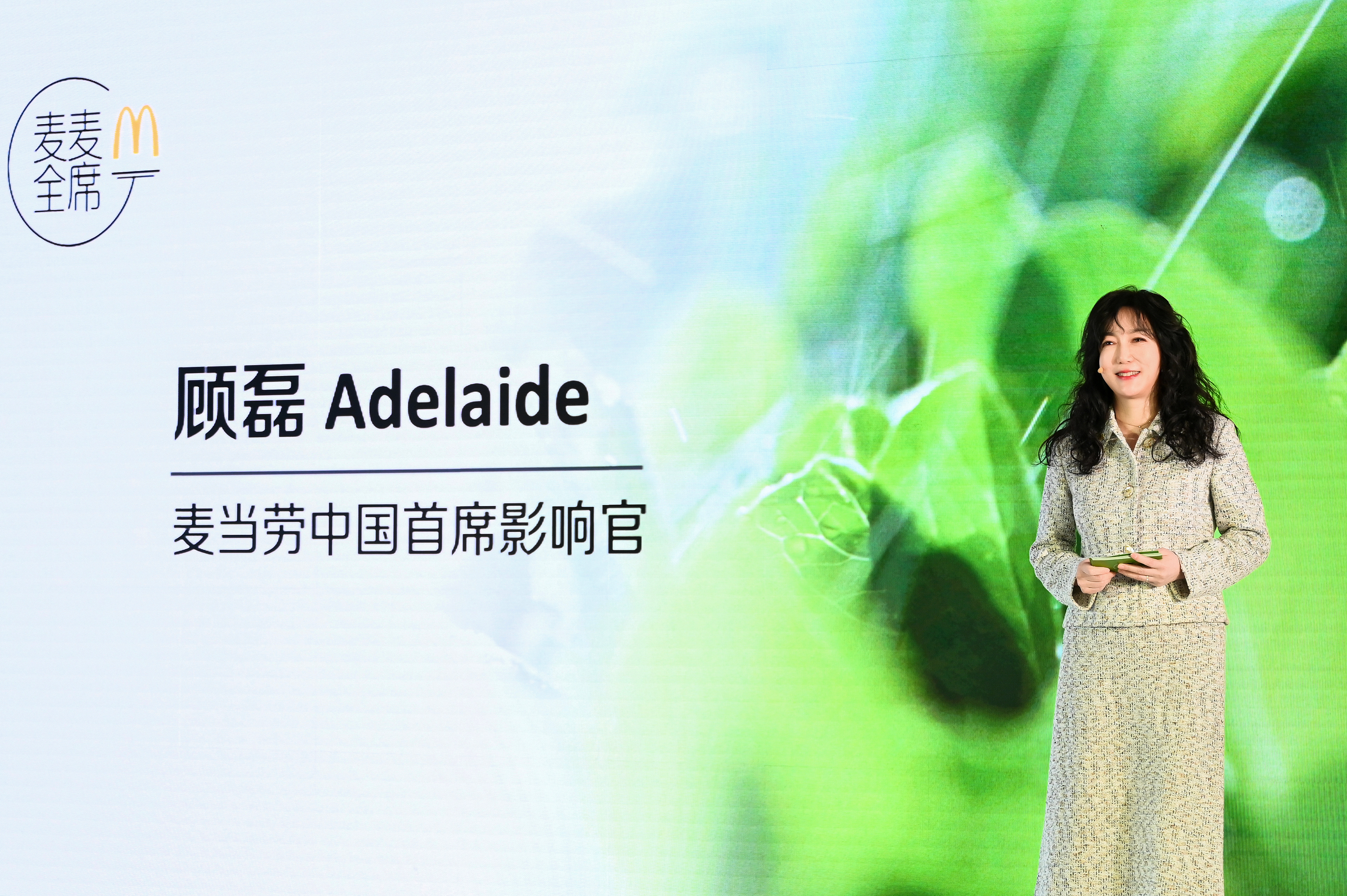 麥當(dāng)勞中國(guó)首席影響官顧磊女士致辭,讓綠色低碳貫穿消費(fèi)者體驗(yàn)的每一個(gè)環(huán)節(jié)